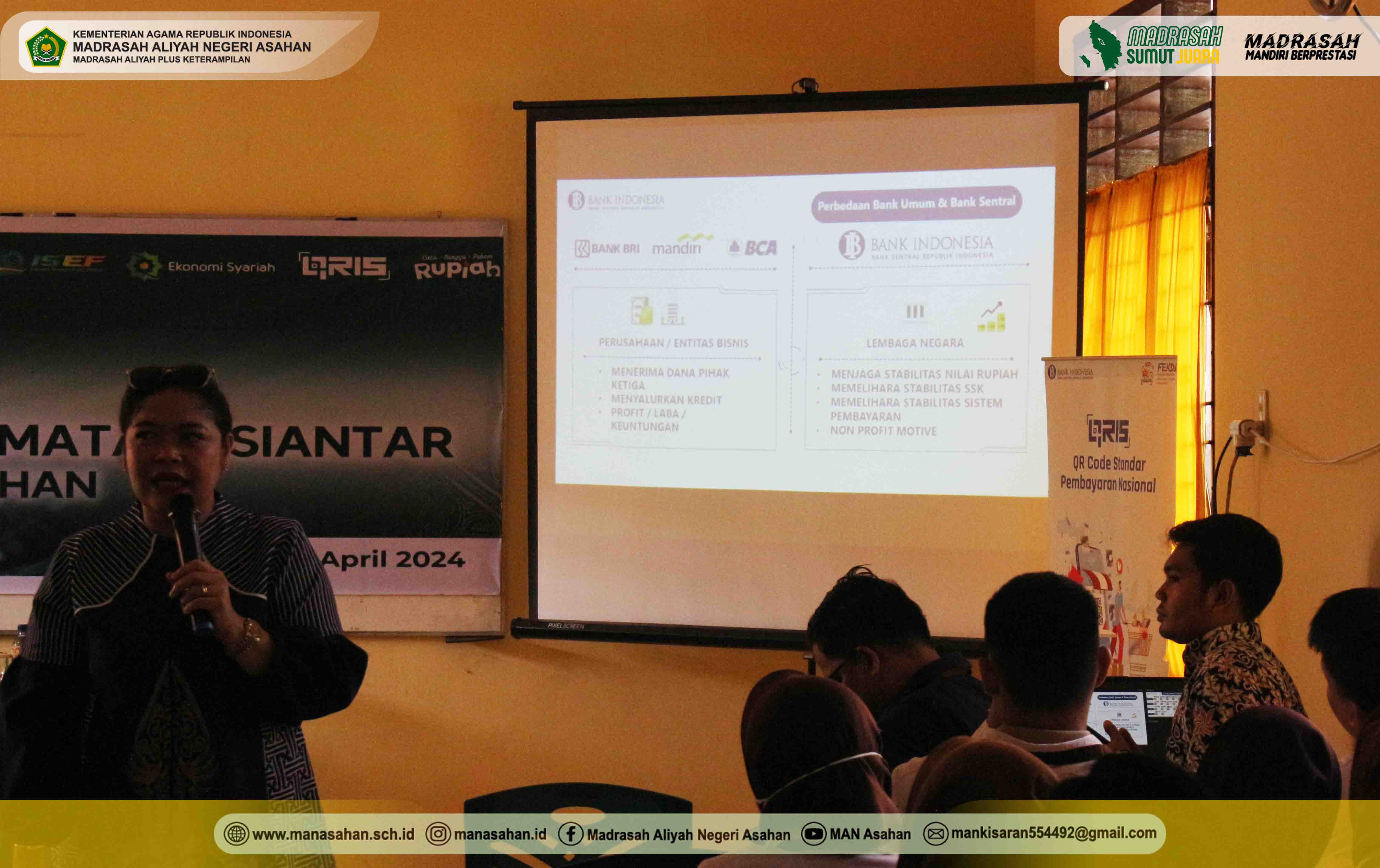 “Ananda kami semua, selamat mengikuti kegiatan ini dengan baik. Manfaatkan kesempatan ini untuk menambah wawasan baru. Selamat datang kami ucapkan dan terima kasih kepada tim KPw Bank Indonesia Pematang Siantar yang telah hadir ke MAN Asahan, bila ada hal-hal yang kurang berkenan di sana-sini kami mohon maaf”, tutup Elda Ayumi.