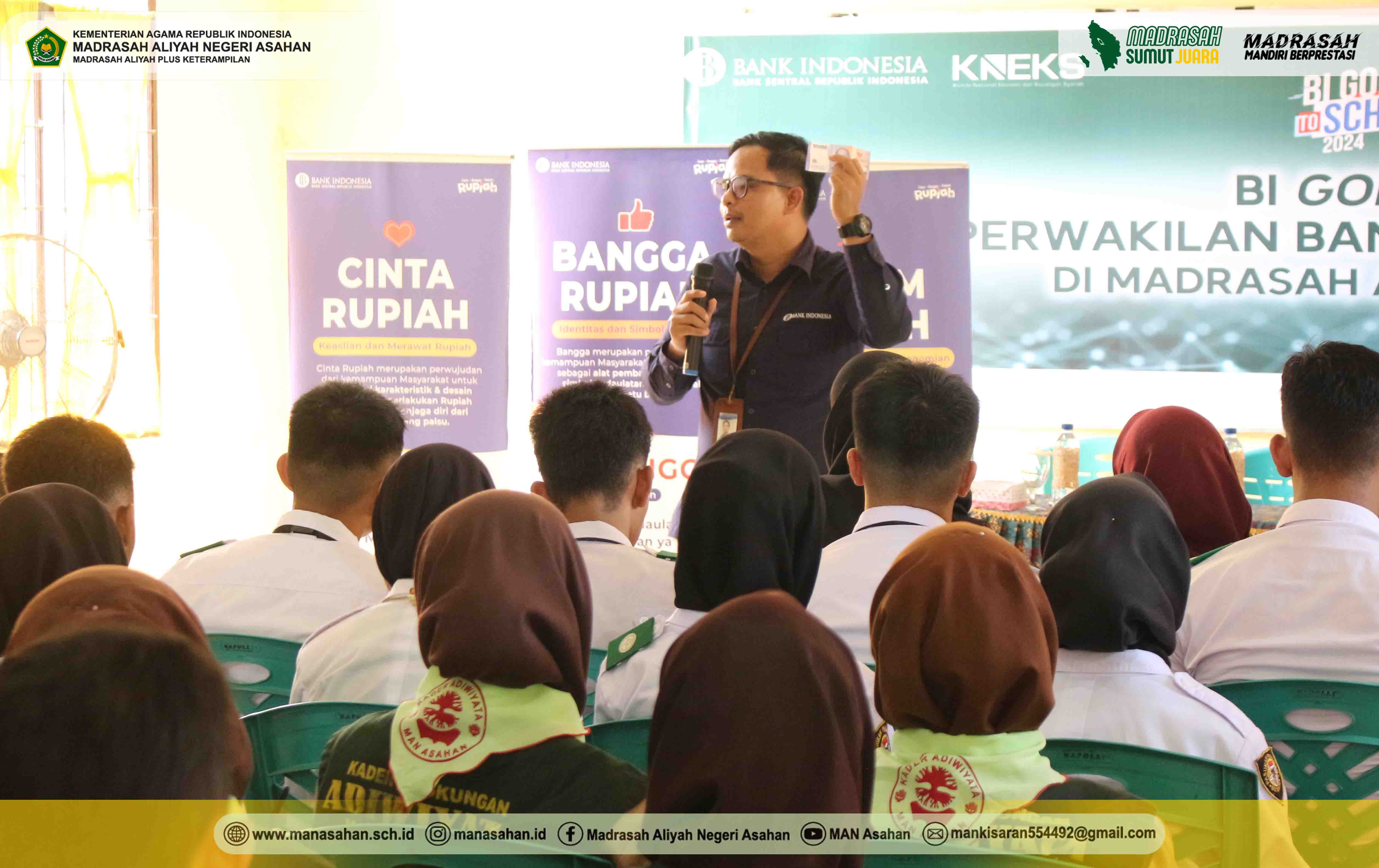 Dari kegiatan ini diharapkan dapat menambah dan memperkaya pengetahuan para peserta didik MAN Asahan terkait bagaimana Bank Indonesia berperan dalam perekonomian Indonesia dan sistem perbankan di Indonesia, serta mengetahui bagaimana cara membedakan uang asli atau palsu, merawat dan memperlakukan uang Rupiah sebagai wujud kecintaan terhadap Rupiah. (wd)