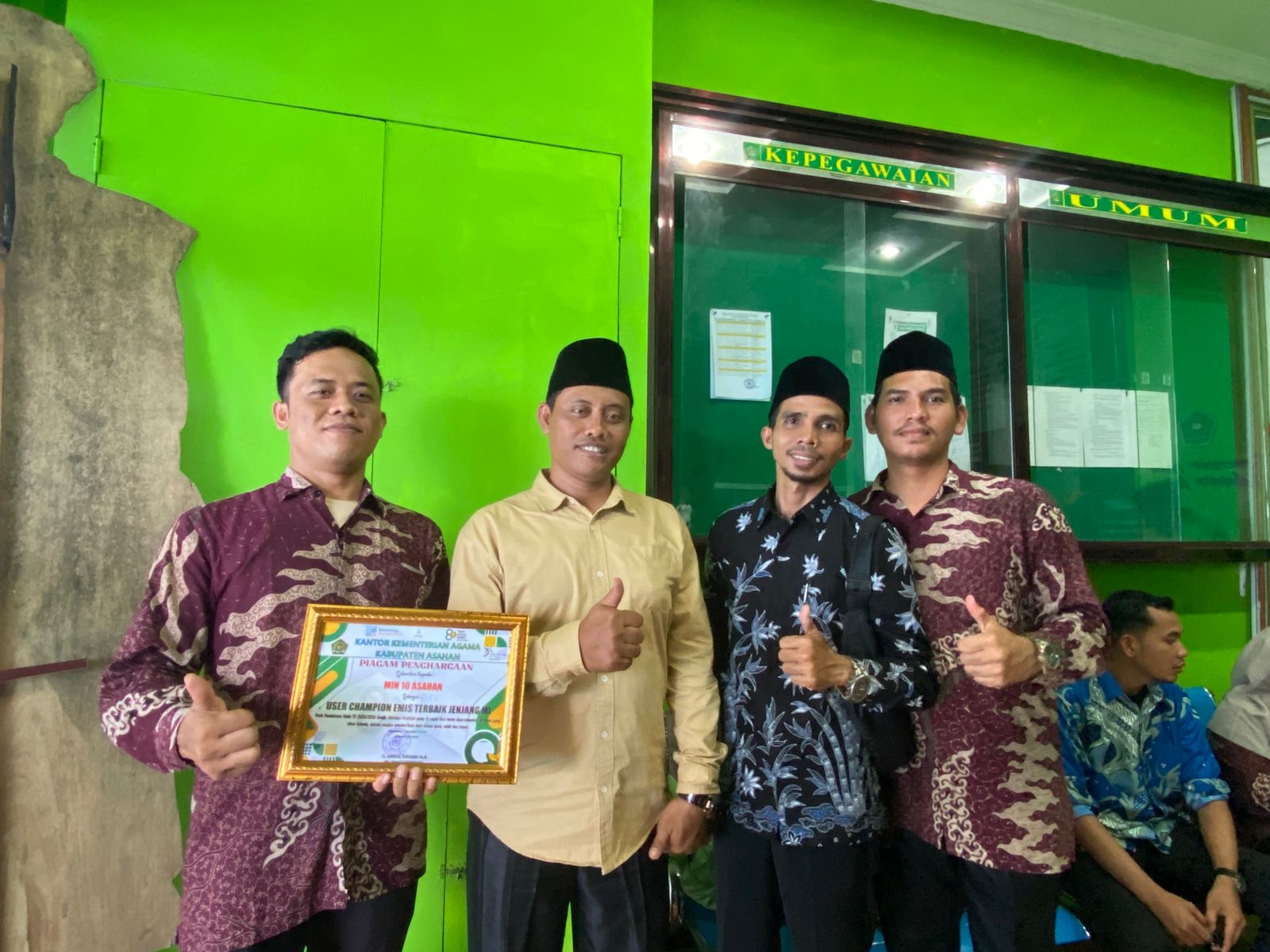 Penghargaan tersebut diberikan sebagai bentuk apresiasi atas dedikasi, ketelitian, dan konsistensi dalam pengelolaan Education Management Information System (EMIS) yang menjadi basis utama data pendidikan madrasah di lingkungan Kementerian Agama. Keberhasilan ini menunjukkan bahwa MIN 10 Asahan mampu menghadirkan tata kelola data yang akurat, tepat waktu, dan berkualitas.