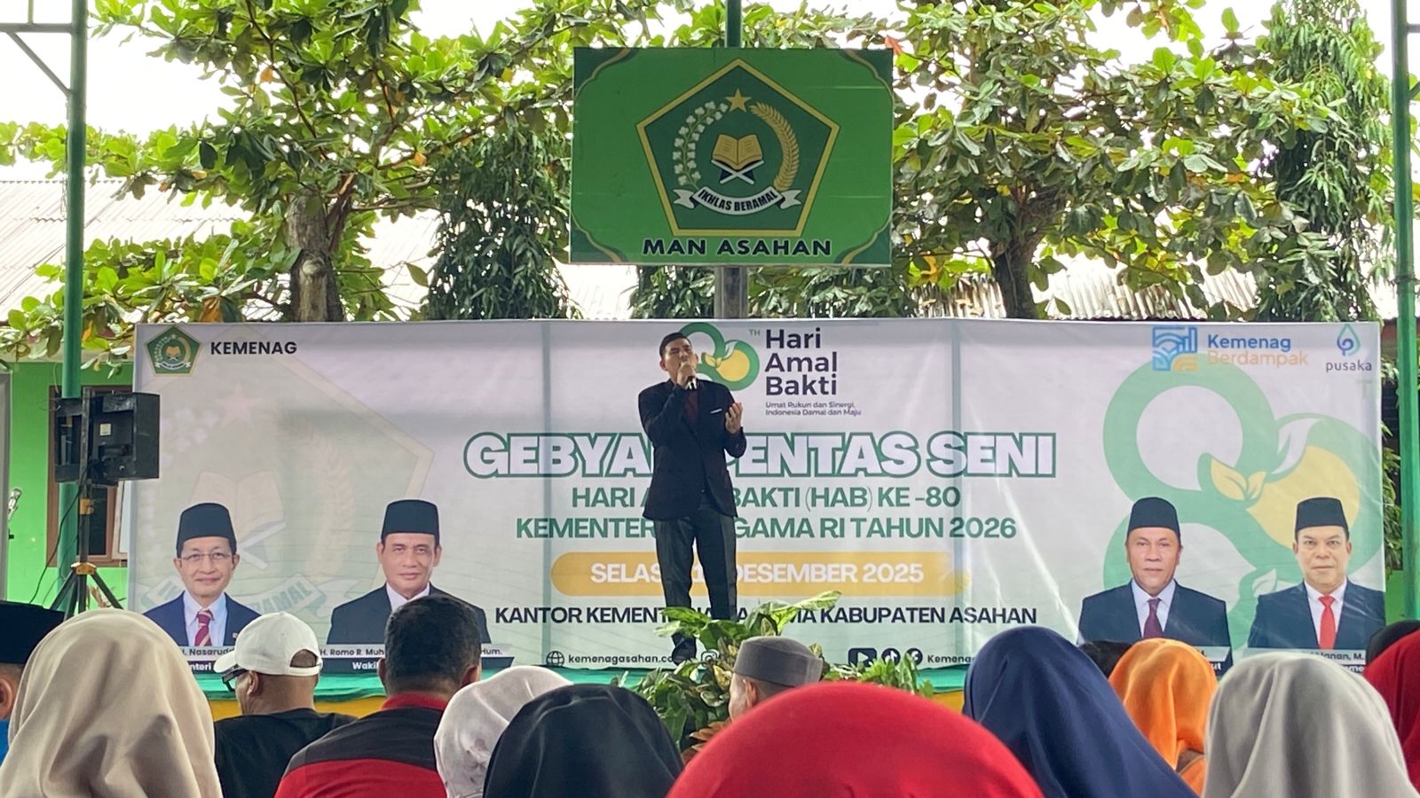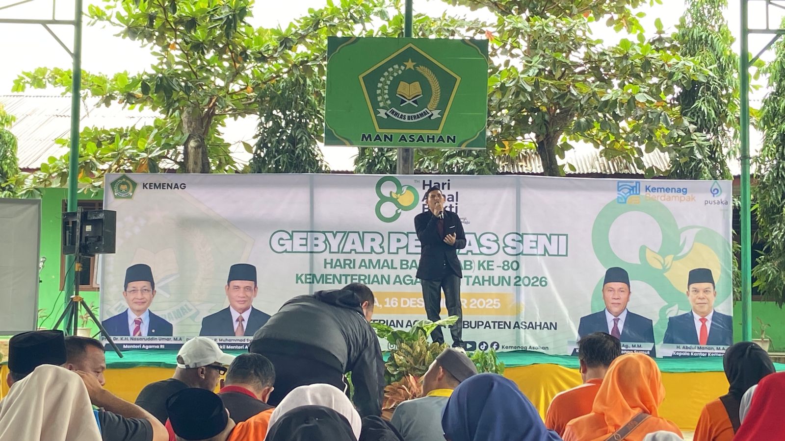 Kakan Kemenag Asahan, H. Abdul Manan, M.A dalam sambutannya menyampaikan bahwa peringatan Hari Amal Bakti merupakan momentum penting untuk merefleksikan pengabdian seluruh insan Kementerian Agama, sekaligus mempererat silaturahmi dan kebersamaan antarmadrasah. Ia mengapresiasi antusiasme para guru yang turut berpartisipasi aktif dalam berbagai perlombaan, termasuk cabang seni suara.