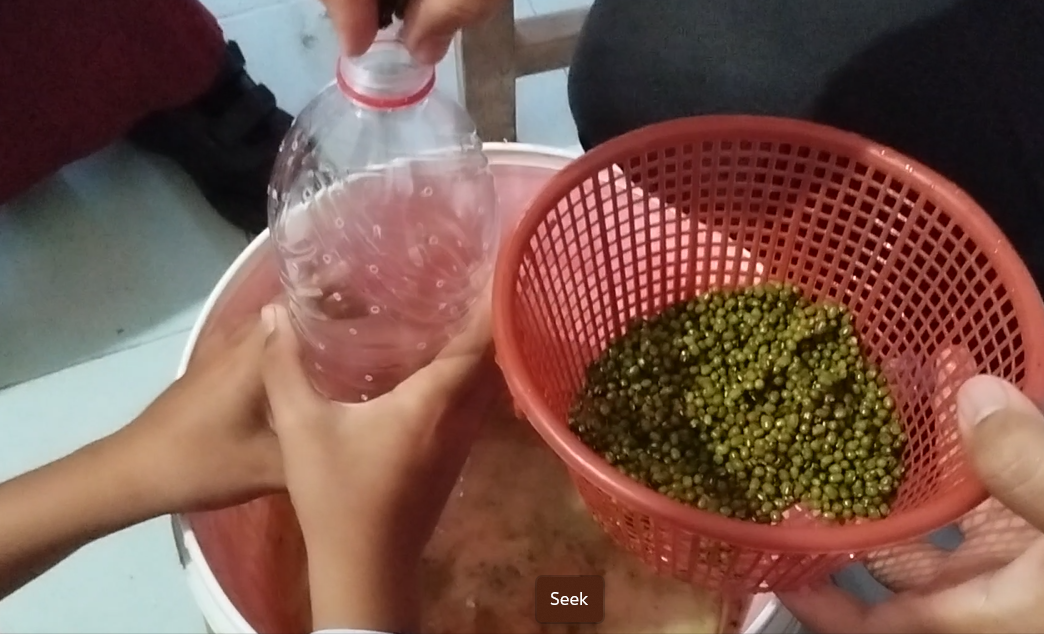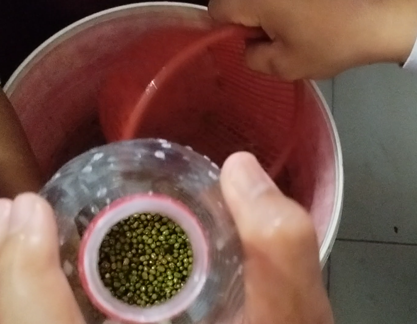 sembari menunggu lubang selesai, kacang hijau direndam pada air yang telah