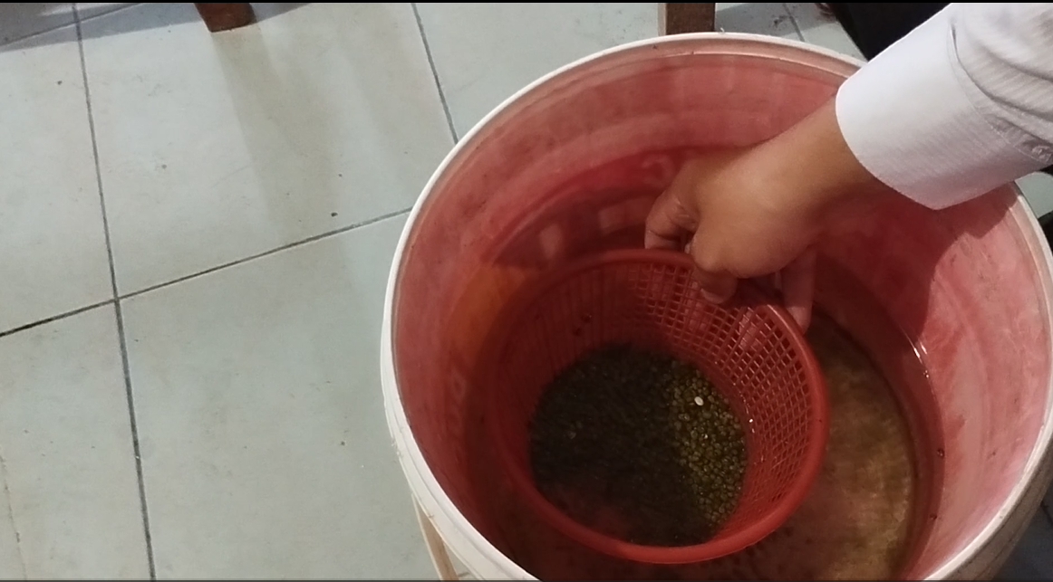 yang mengambang agar dibuang, karena kacang tersebut kopong (tidak ada bakal