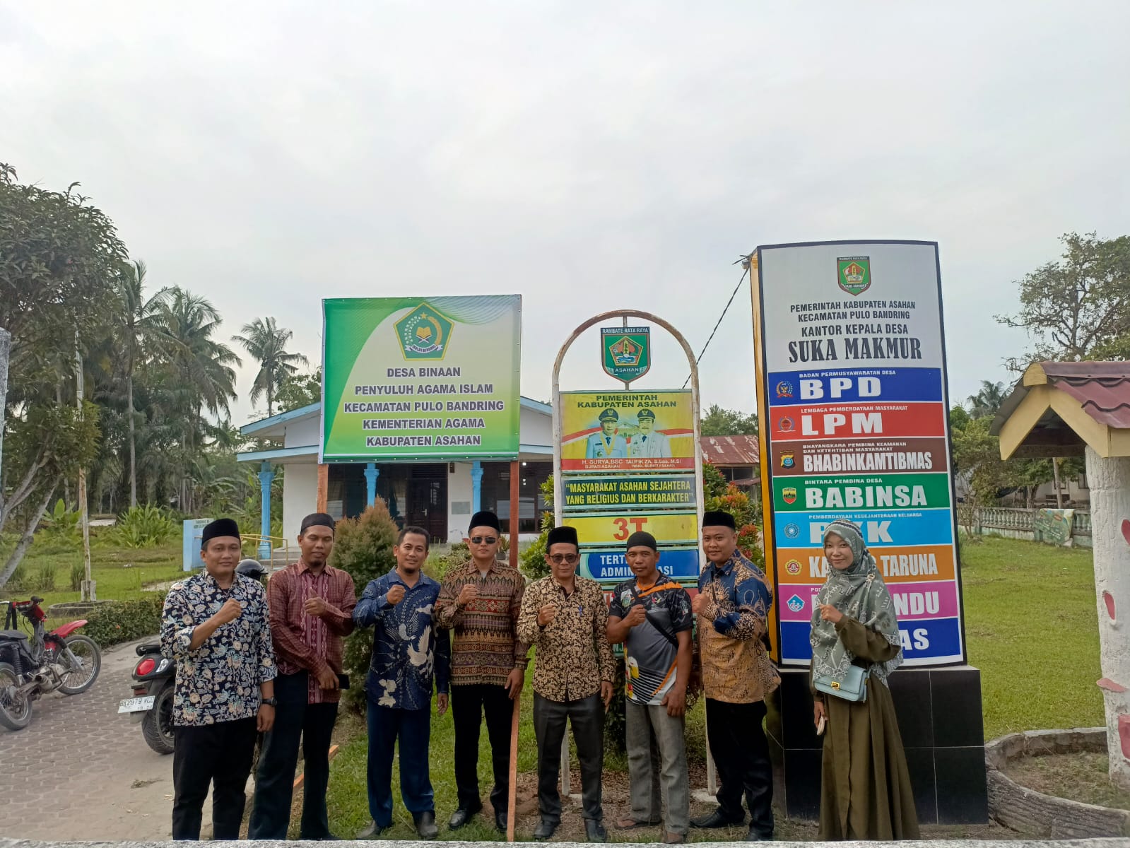 Para Penyuluh Agama Islam KUA Pulo Bandring, Agus Supono,S.Sos, Susilo, S.Kom.I, Mela Harianti, S.H, Haidir Marpaung, Lc, Mawal Harahap, S.H, Fakhrun Khair, Lc, Hasbirani, S.Pd.I memulai Melaksanakan program Desa binaan ini dengan memasang plank di Kantor desa Suka Makmur yang disaksikan oleh ketua LPM Ngatimin.