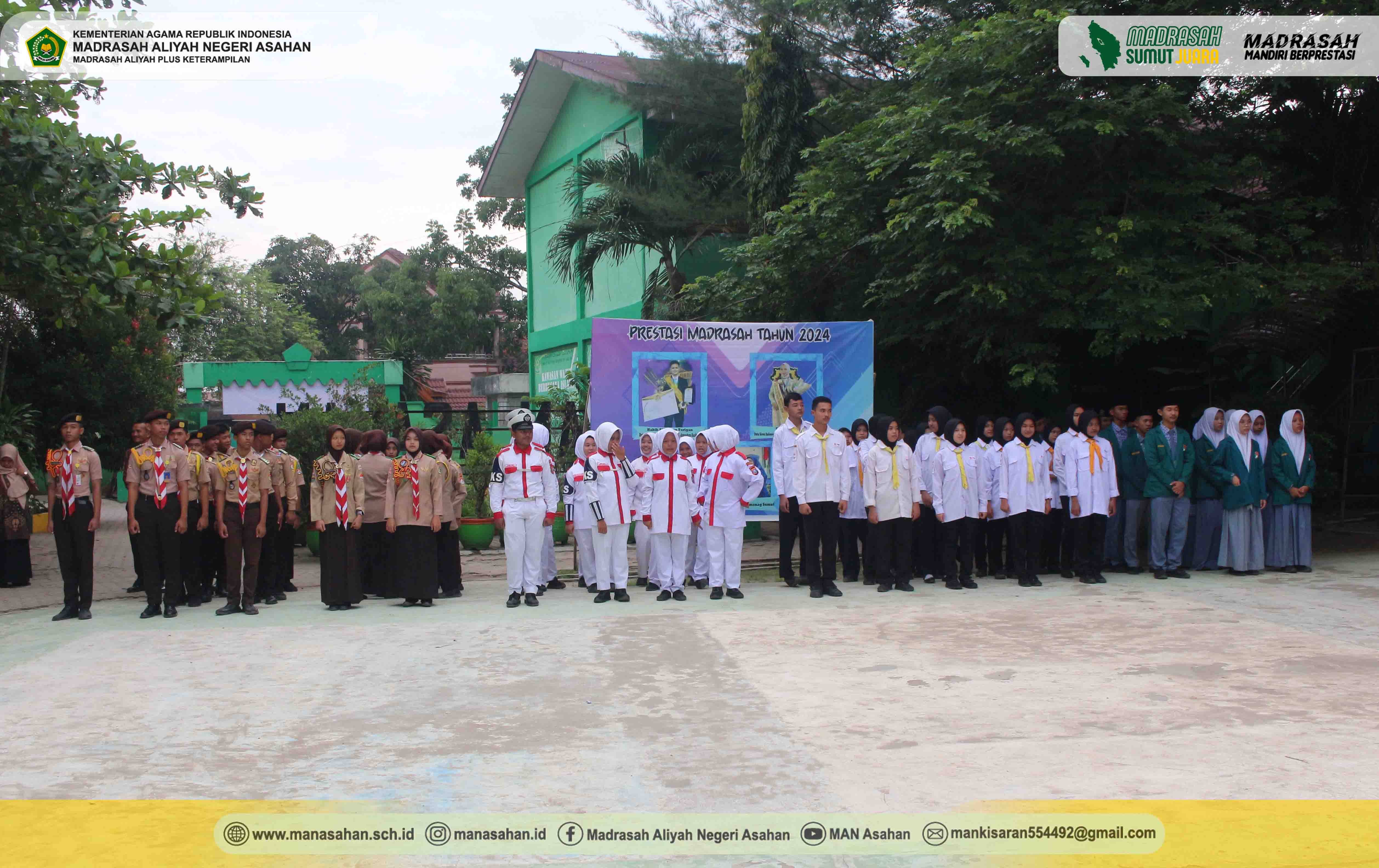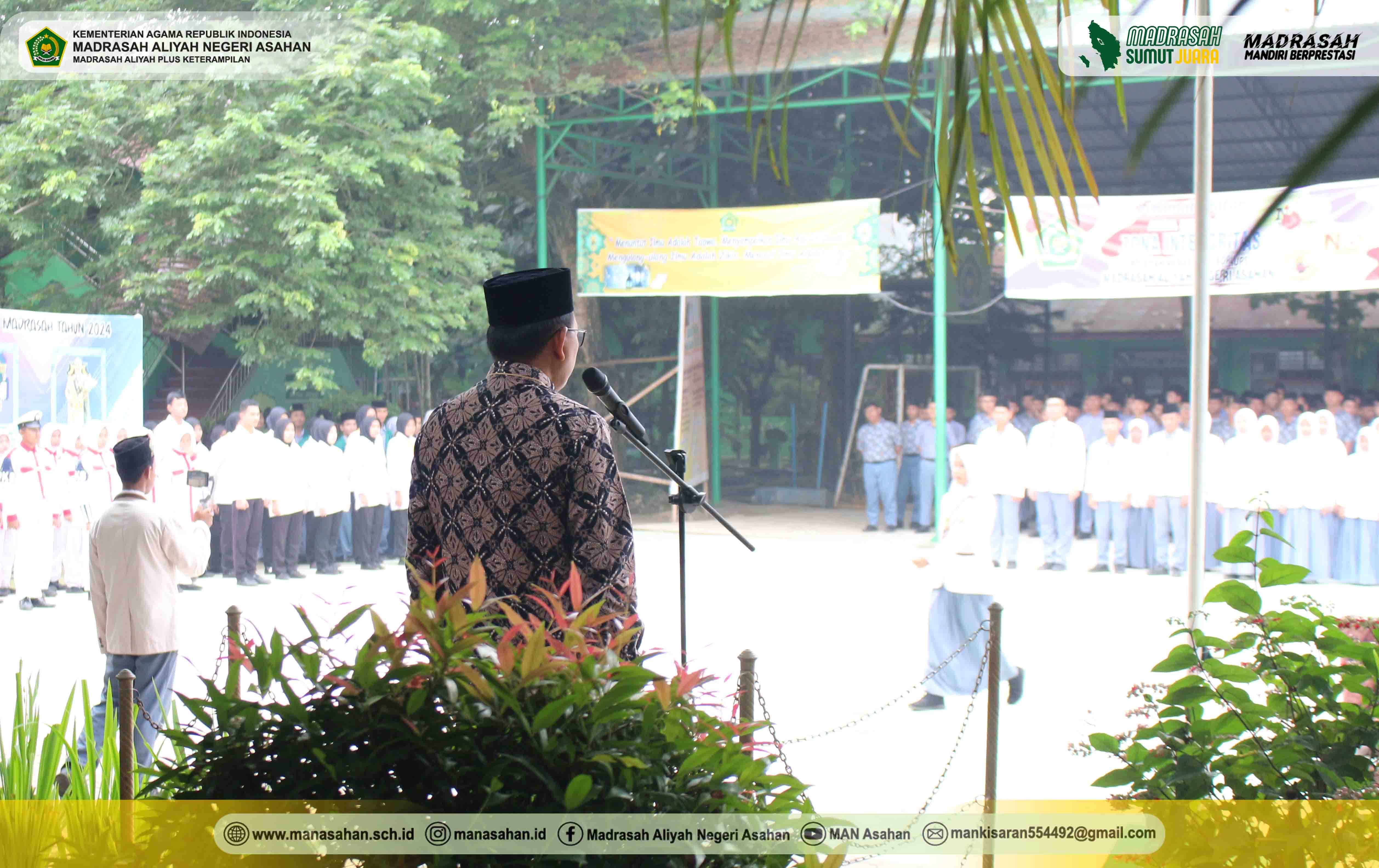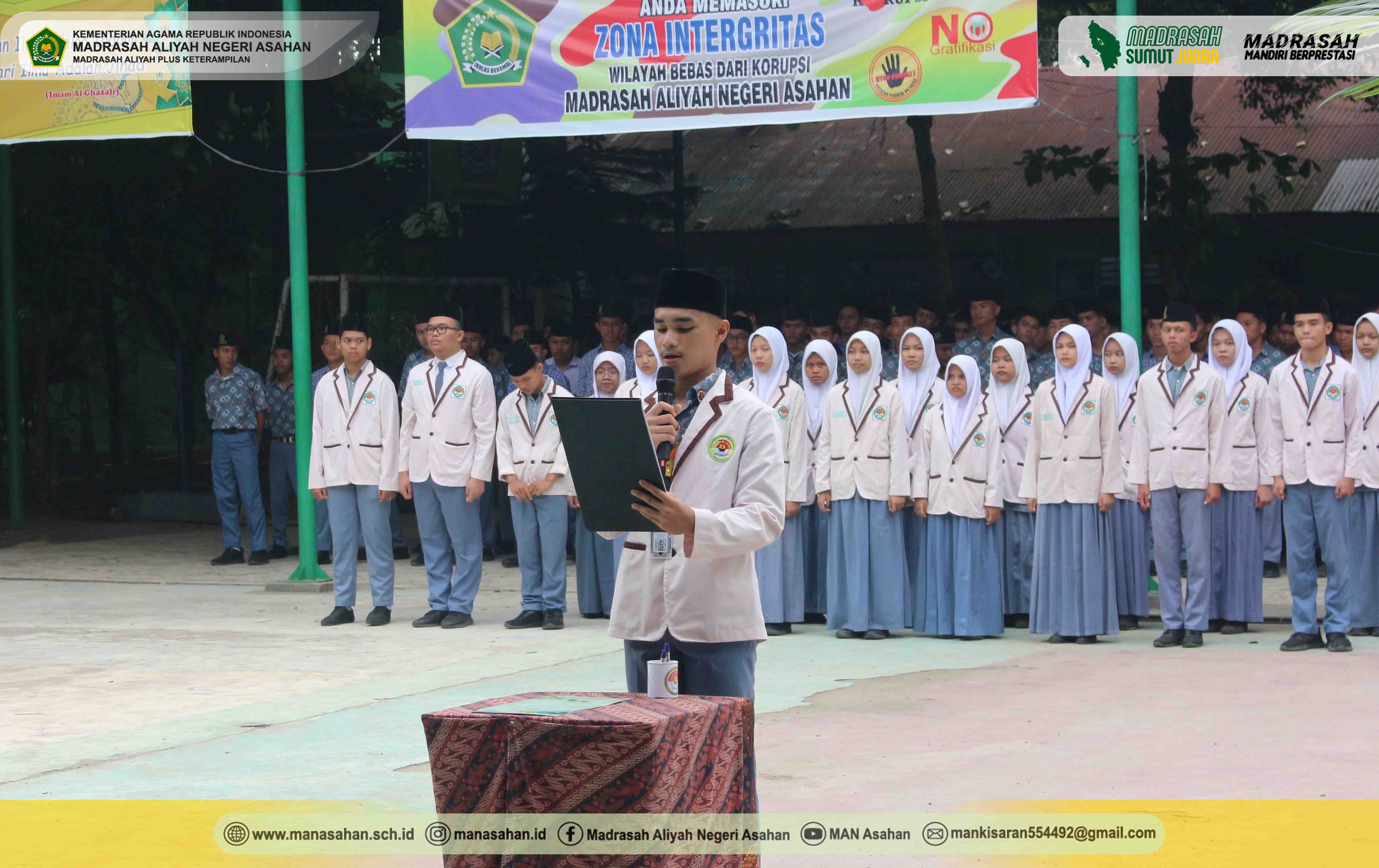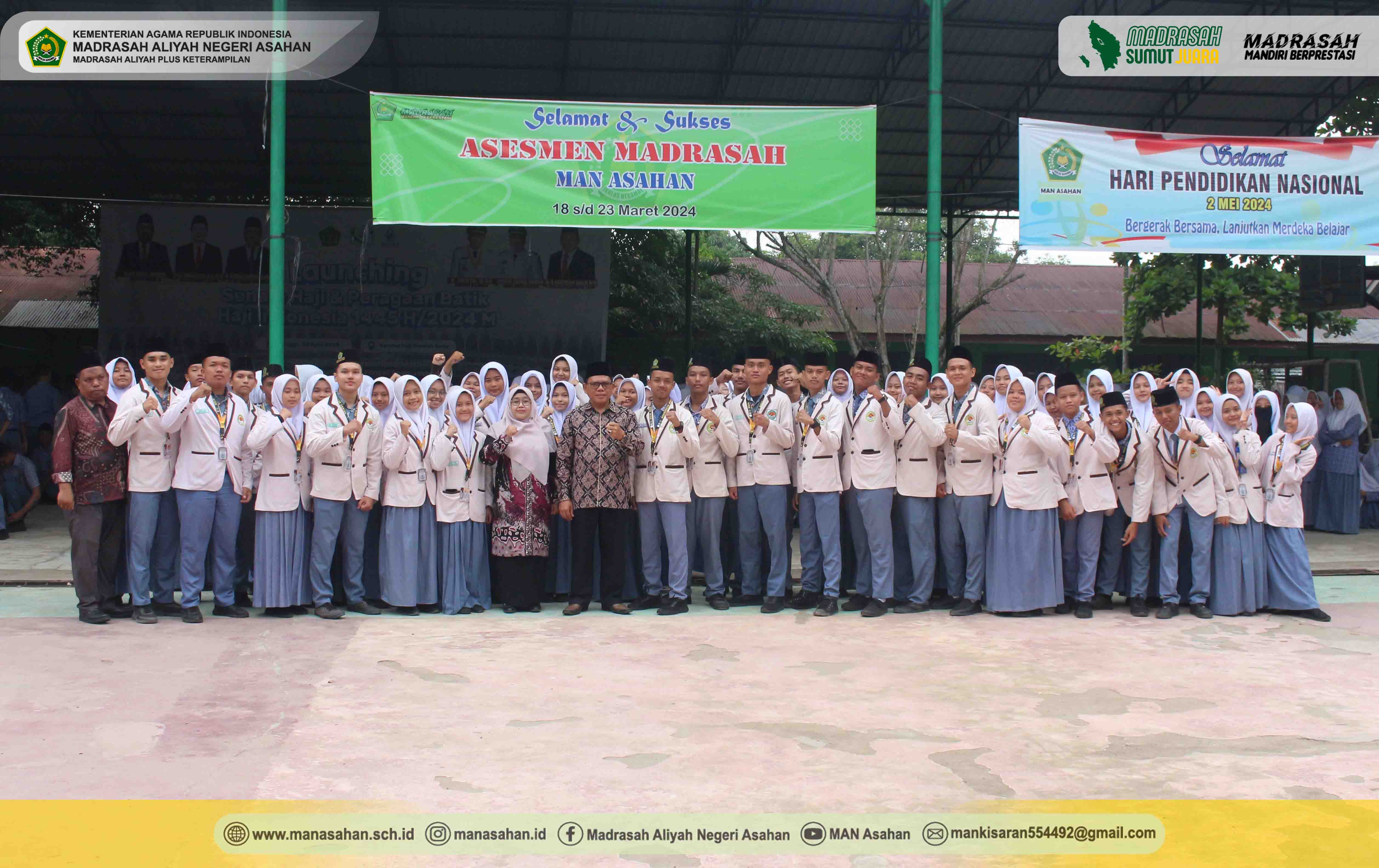 Kisaran (Humas). Madrasah Aliyah Negeri (MAN) Asahan melaksanakan kegiatan pelantikan Ketua dan Pengurus Organisasi Siswa Intra Madrasah (OSIM) MAN Asahan Masa Bakti 2024/2025 di lapangan MAN Asahan, Rabu (22/5/2024). Pelantikan tersebut dilakukan oleh Kepala Kantor Kementerian Agama Kabupaten Asahan Dr. H. Saripuddin Daulay, M.Pd dan disaksikan Kepala MAN Asahan Dra. Hj. Elda Ayumi, M.Si.
