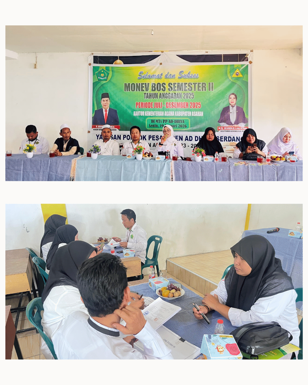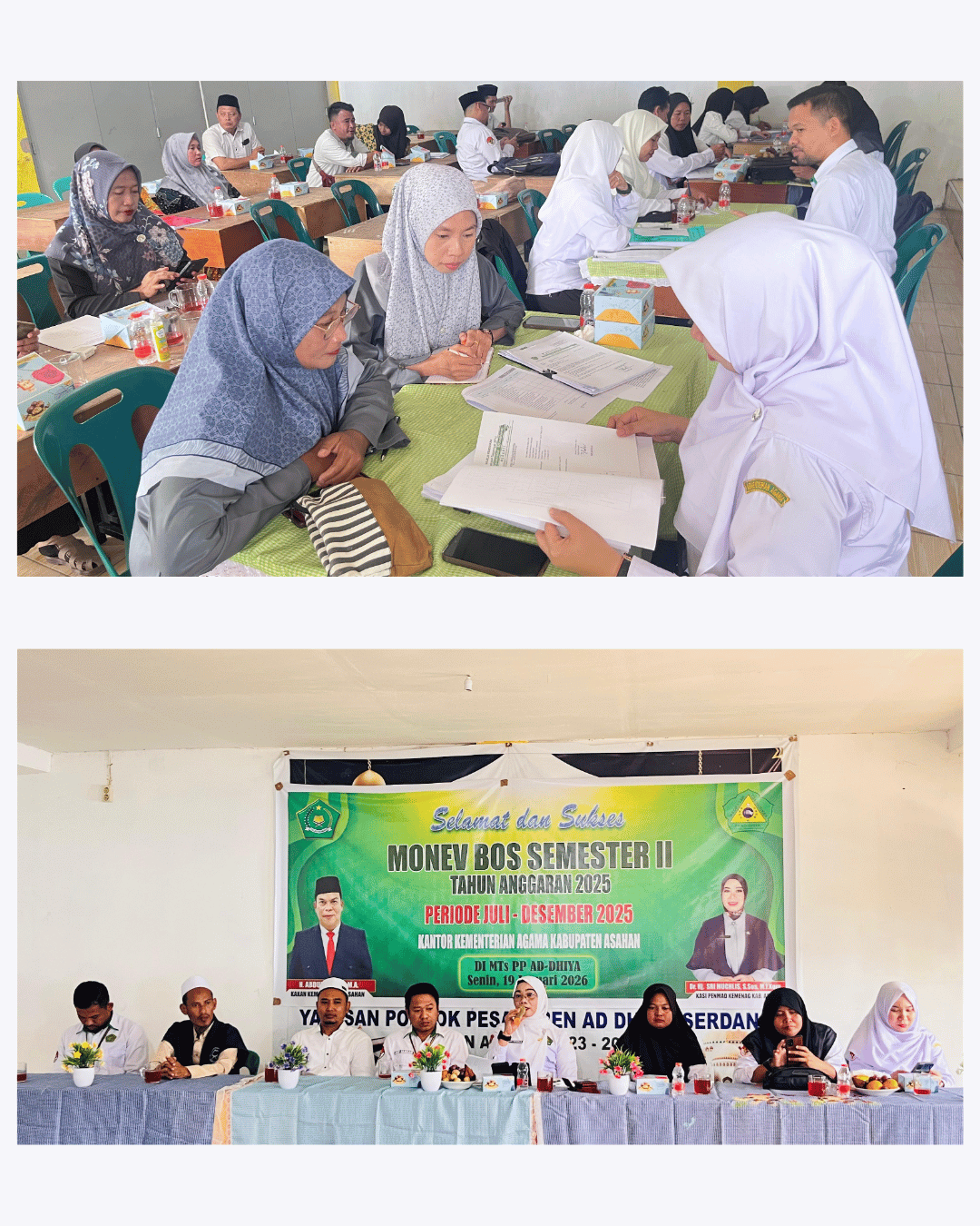 Kisaran (Humas). Kantor Kementerian Agama (Kemenag) Kabupaten Asahan melalui Seksi Pendidikan Madrasah (Penmad) menggelar kegiatan Monitoring dan Evaluasi (Monev) Bantuan Operasional Sekolah (BOS) untuk tingkat Madrasah dan Raudhatul Athfal (RA) di Zona III. Kegiatan ini dilaksanakan pada Senin (19/1/2026) bertempat di MTs PP Ad Dhiya’, Kecamatan Meranti.
