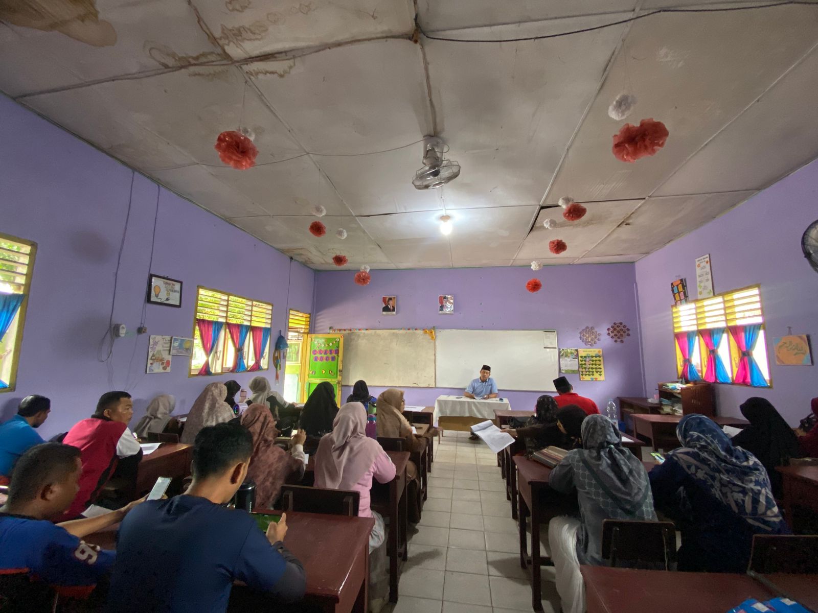 Diskusi berlangsung secara interaktif, di mana para guru diberikan kesempatan untuk menyampaikan saran, masukan, dan kendala yang dihadapi selama proses pembelajaran. Hal ini menciptakan suasana rapat yang terbuka dan konstruktif, sehingga setiap permasalahan dapat dicarikan solusi bersama.