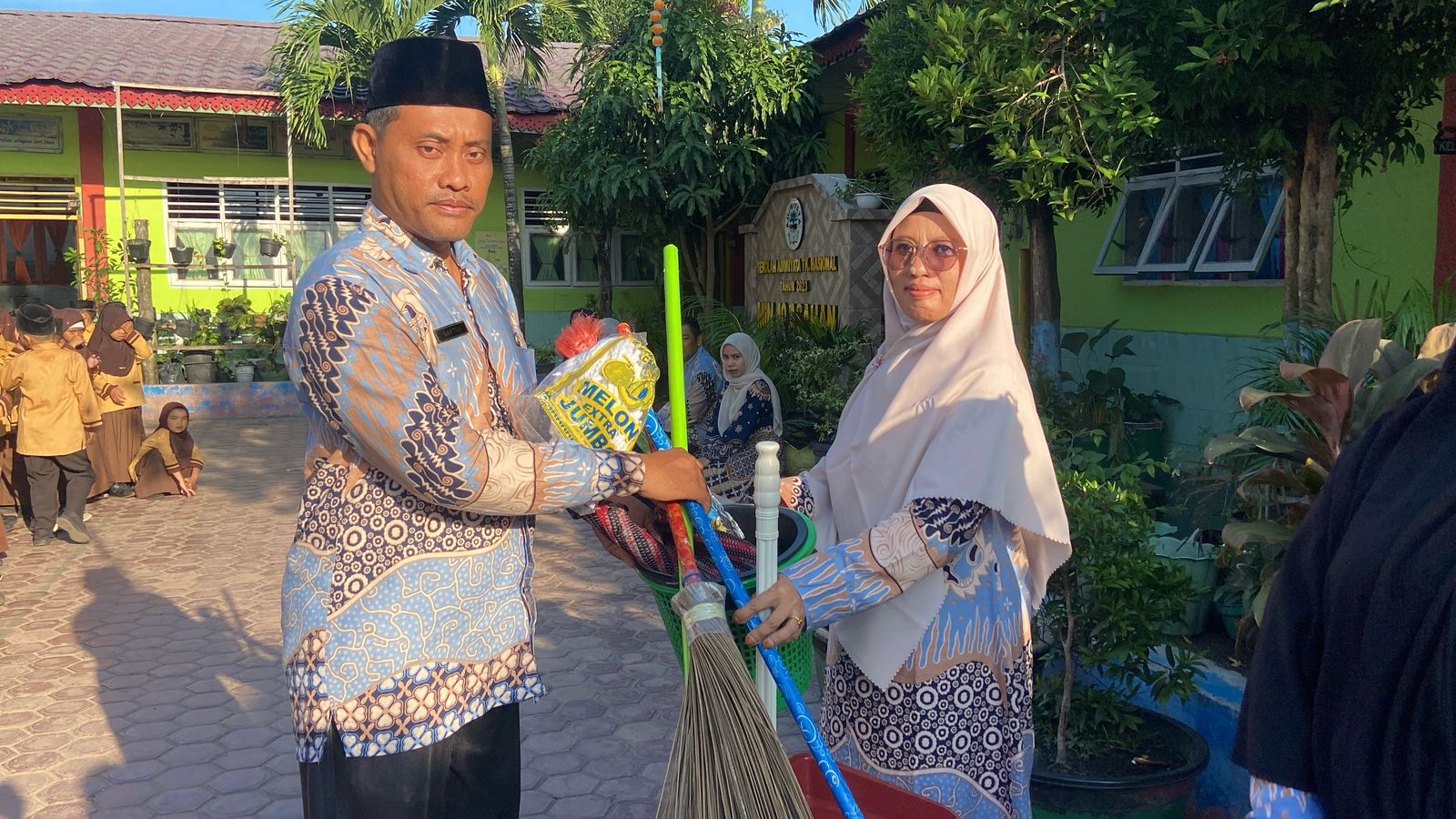 Kisaran (Humas) Dalam upaya meningkatkan kesadaran dan kepedulian terhadap kebersihan lingkungan sekolah, Kepala Madrasah Ibtidaiyah Negeri (MIN) 10 Asahan, Sartiji S.Pd.I,.MM, secara simbolis menyerahkan alat kebersihan kepada para wali kelas di hadapan seluruh peserta didik dalam acara apel pagi yang digelar di halaman madrasah. Kegiatan ini dihadiri oleh semua siswa, guru, serta staf pengajar lainnya, dan berlangsung dengan penuh antusiasme Jumat (25/04/2025).