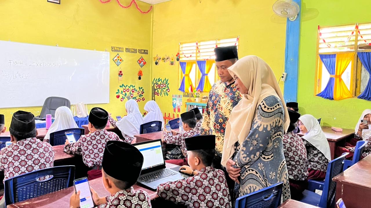 Kunjungan berlangsung sejak pagi, dimulai dengan pengecekan kesiapan perangkat laptop dan jaringan internet yang digunakan dalam pelaksanaan CBT. Kehadiran kepala madrasah dan pengawas madrasah disambut baik oleh para guru kelas yang sejak awal sudah mempersiapkan segala kebutuhan teknis demi terciptanya proses evaluasi yang profesional dan bebas dari kendala.
