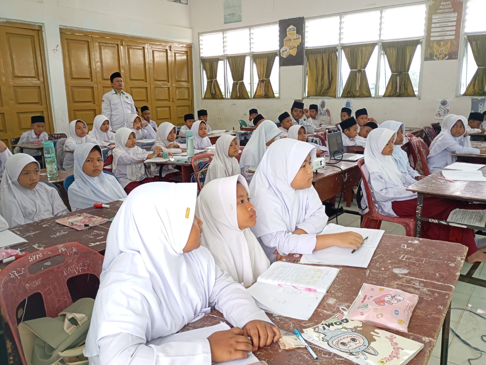 Dalam kegiatan tersebut, guru kelas 5 Mawaddah Sima memanfaatkan media proyektor untuk menampilkan contoh-contoh soal, langkah-langkah pengurangan pecahan, serta ilustrasi visual yang membantu siswa memahami konsep secara lebih mudah. Penggunaan media ini membuat siswa lebih fokus dan antusias dalam mengikuti pembelajaran.