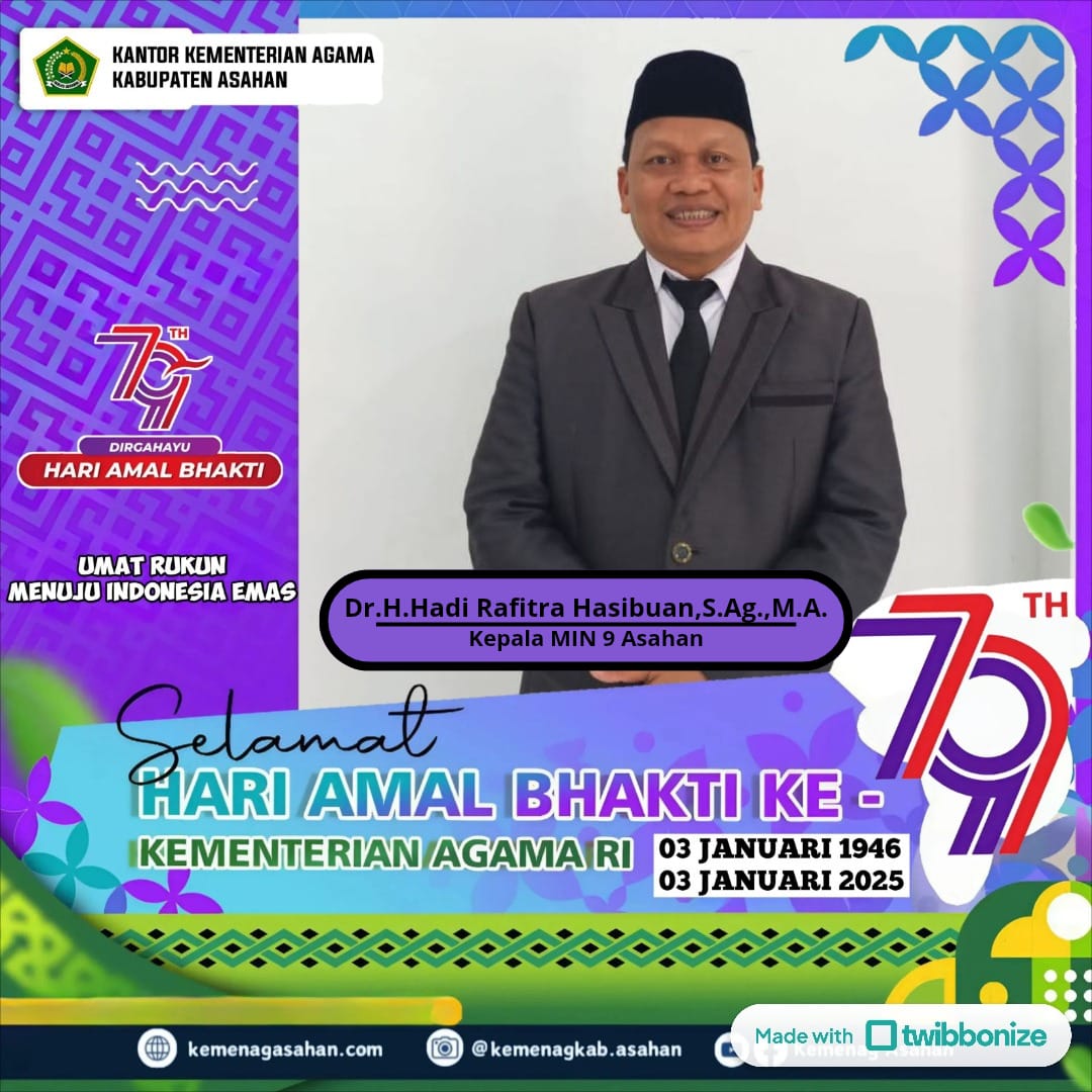 Pematang Sei Baru (Humas). Dalam rangka memperingati Hari Amal Bakti (HAB) Kementerian Agama Republik Indonesia ke-79, Kepala Madrasah Ibtidaiyah Negeri MIN 9 Asahan, Dr. H. Hadi Rafitra Hasibuan, S.Ag., M.A, bersama beberapa ASN Kemenag Asahan melaksanakan ziarah ke Taman Makam Pahlawan (TMP) di Kisaran pada Kamis (2/1/2025).