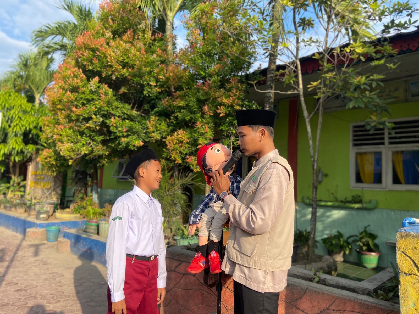 Dalam sesi inti, Kakak Ardian tampil memukau dengan gaya ceria dan komunikatif. Ia menyampaikan pesan-pesan Islami melalui cerita yang dikemas menarik dengan bantuan boneka tangan. Metode ini membuat para siswa mudah memahami nilai-nilai seperti berbagi, bersyukur, sabar, dan peduli terhadap sesama.
