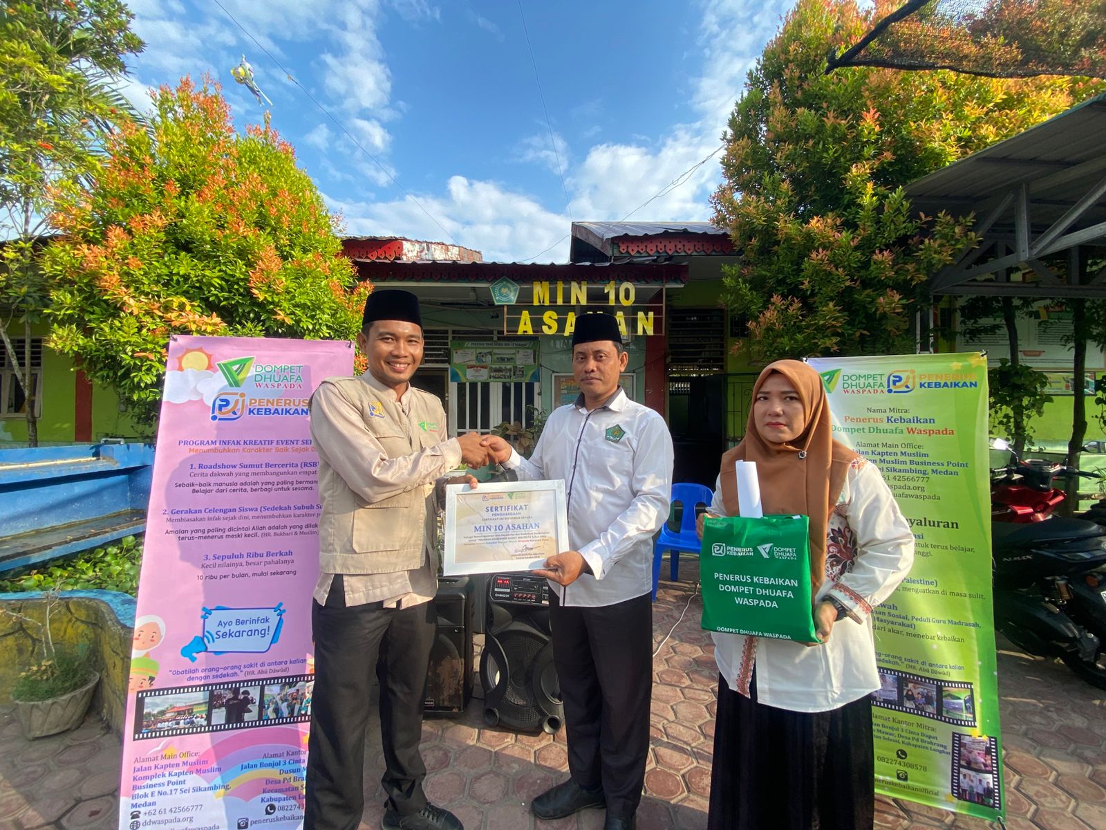 Kepala Madrasah MIN 10 Asahan, Sartiji, S.Pd.I., MM, dalam sambutannya menyampaikan apresiasi dan rasa terima kasih kepada Dompet Dhuafa Waspada atas kepedulian dan kontribusinya dalam memberikan edukasi kemanusiaan kepada peserta didik.