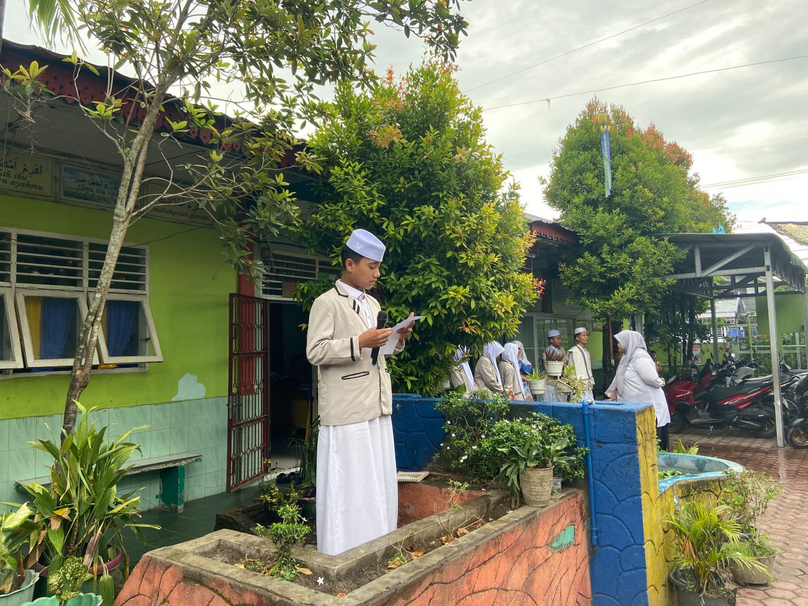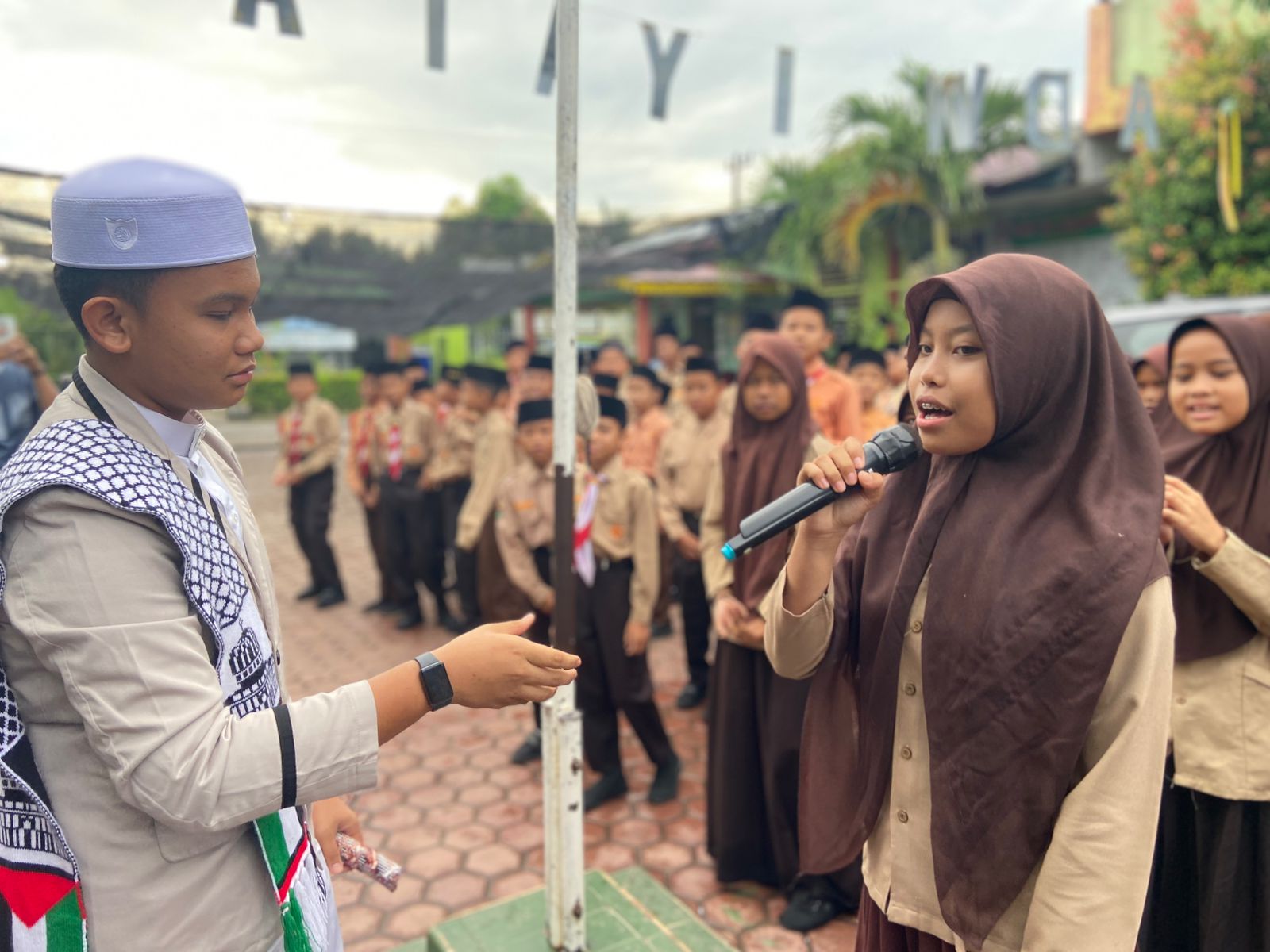 Kegiatan dimulai dengan penampilan pidato oleh beberapa santri, baik dalam bahasa Indonesia maupun bahasa Arab. Para peserta tampak penuh percaya diri ketika menyampaikan orasi bertema motivasi, keagamaan, dan pentingnya menuntut ilmu. Penampilan mereka tidak hanya mengundang tepuk tangan meriah, tetapi juga memberikan inspirasi bagi siswa MIN 10 Asahan untuk terus mengasah kemampuan berbahasa serta keberanian tampil di depan publik.