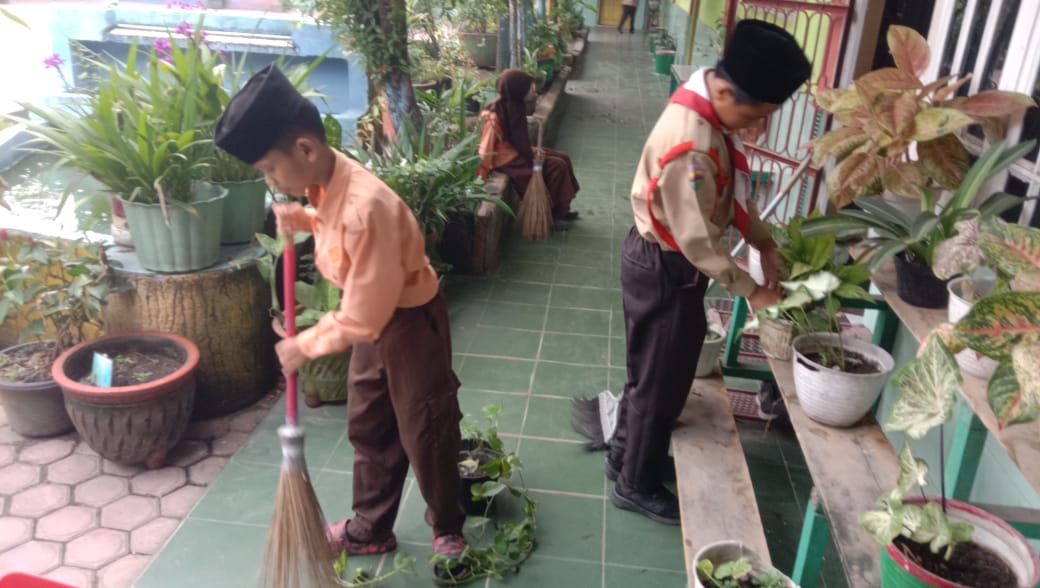 Kegiatan dimulai pada pukul 09.00 WIB. Para siswa dibagi dalam beberapa kelompok untuk membersihkan area yang telah ditentukan, termasuk menyapu halaman, membersihkan taman madrasah, serta merapikan koleksi buku di perpustakaan dan