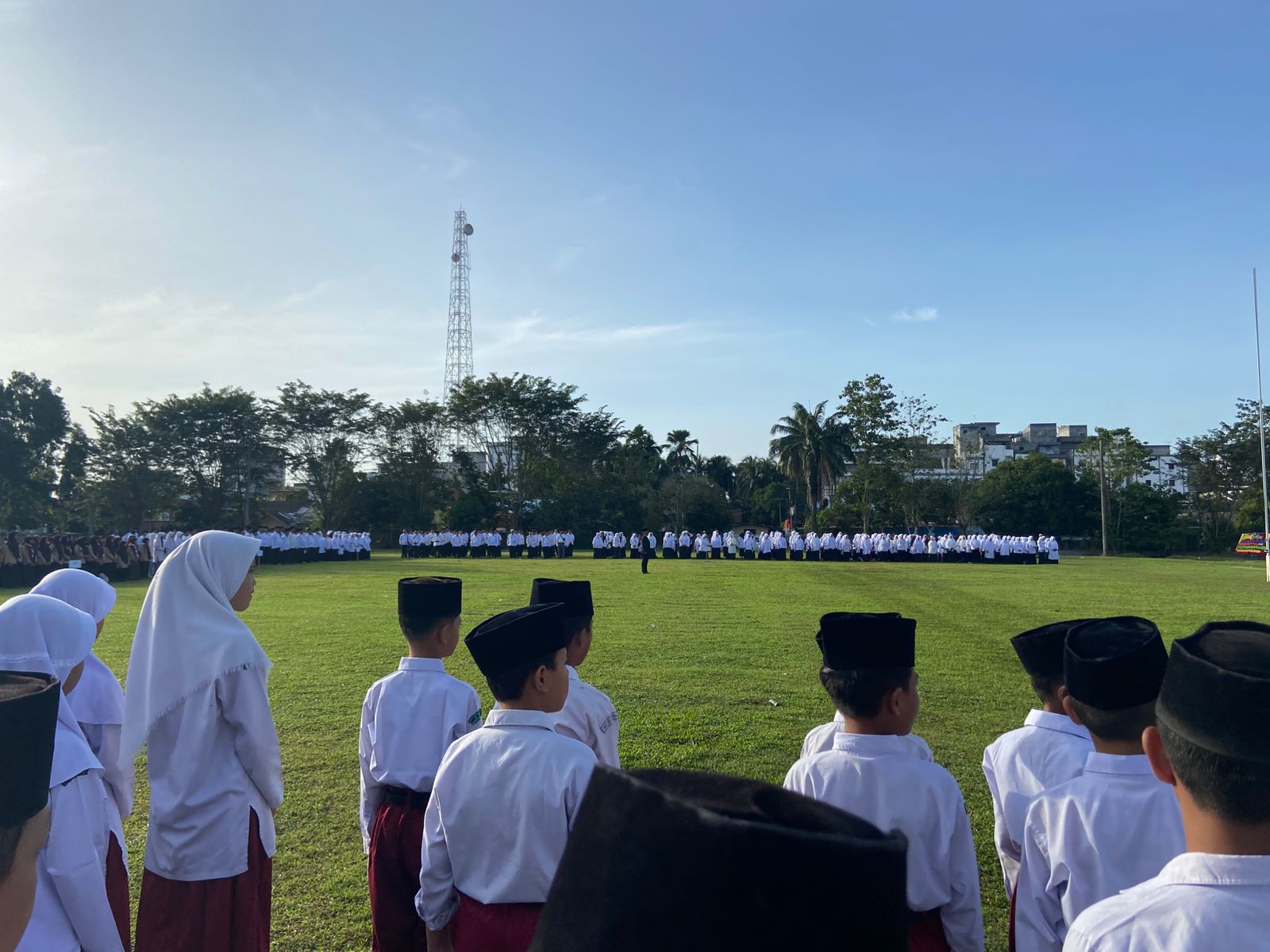 Sejak pagi hari, para peserta telah memadati Lapangan Hoki Kisaran dengan mengenakan seragam resmi. Barisan pendidik dan siswa MIN 10 Asahan tampak rapi dan penuh semangat mengikuti setiap rangkaian upacara. Kepala Madrasah MIN 10 Asahan, Sartiji, S.Pd.I., M.M., turut berdiri bersama para pimpinan satuan kerja lainnya, menunjukkan kebersamaan dan soliditas insan Kementerian Agama di Kabupaten Asahan.