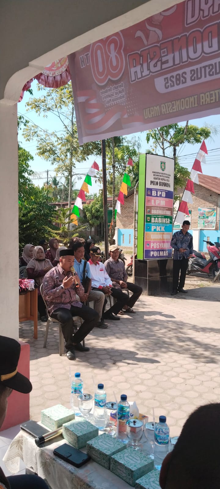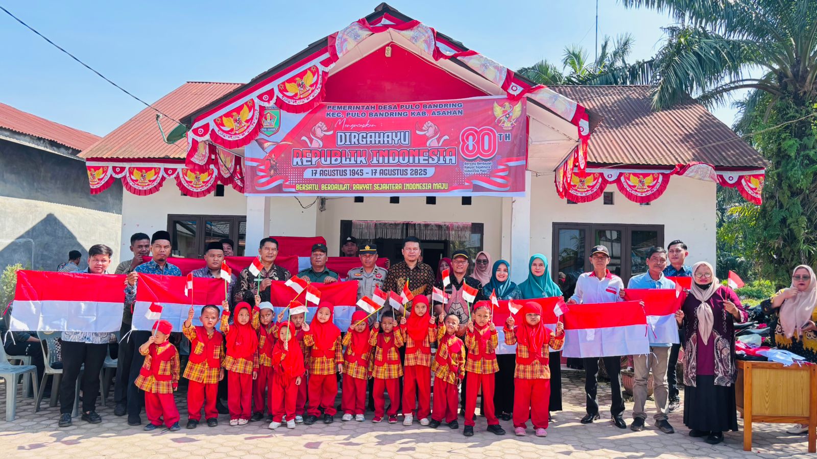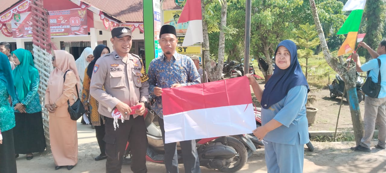 Dalam Rangka menyambut hari kemerdekaan Republik Indonesia ke 80 Tahun Porkopimcam Kec. Pulo Bandring melaksanakan Gerakan Pembagian Bendera Merah Putih di Desa Pulo Bandring.