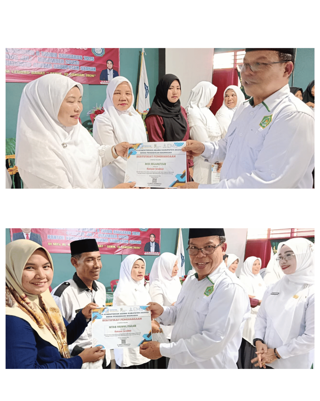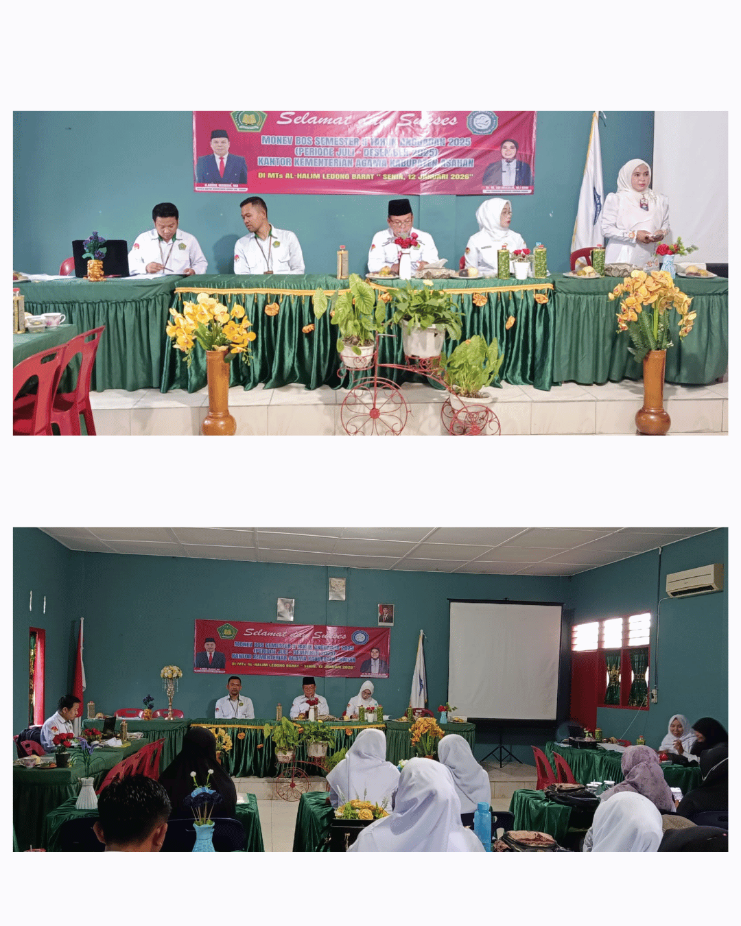 Acara yang berlangsung di Aula MTs Al-Halim Ledong Barat pada hari Senin (12/01/26) ini, tidak hanya berfokus pada aspek pengawasan , tetapi juga dirangkaikan dengan penyerahan sertifikat penghargaan kepada 12 madrasah yang tervalidasi pada Emis dan Verval PD.