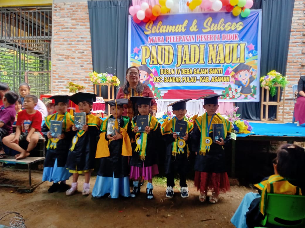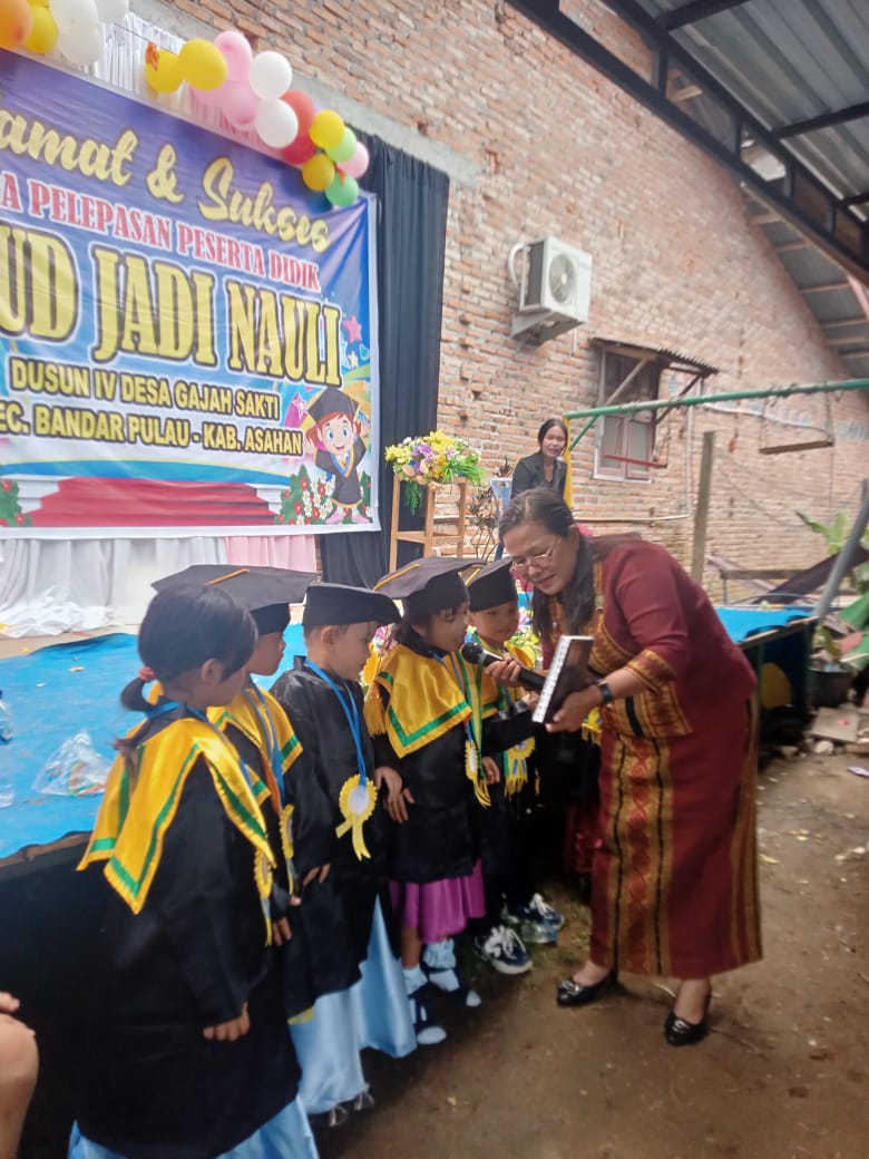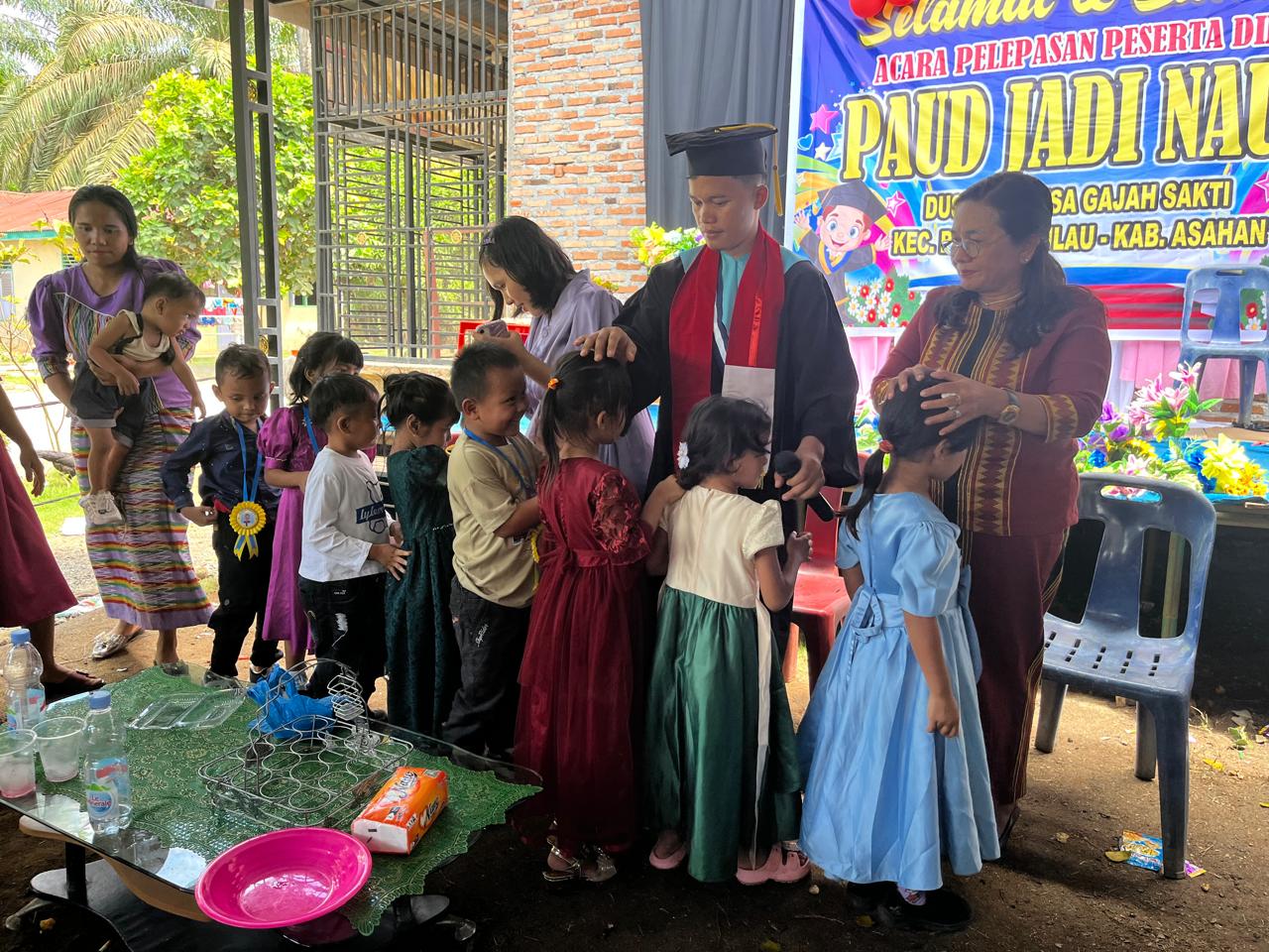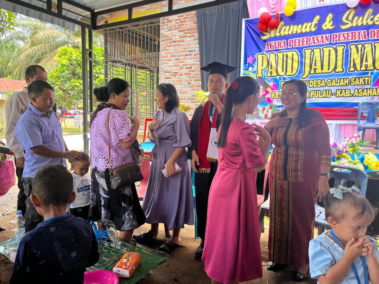 Pulau Rakyat, Kab. Asahan (18/06/2025)— Momen sukacita dan penuh haru mewarnai acara pelepasan anak didik PAUD Jadi Nauli, yang digelar di Desa Padang Mahondang, Kecamatan Pulau Rakyat, Kabupaten Asahan. Dalam kesempatan istimewa ini, Penyelenggara Bimas Kristen Kementerian Agama Kabupaten Asahan, Marintan Simanjuntak, S.Th, M.PdK, hadir bersama para Penyuluh Agama Kristen Kab. Asahan untuk memberikan dukungan spiritual dan moril bagi anak-anak serta para pendidik.