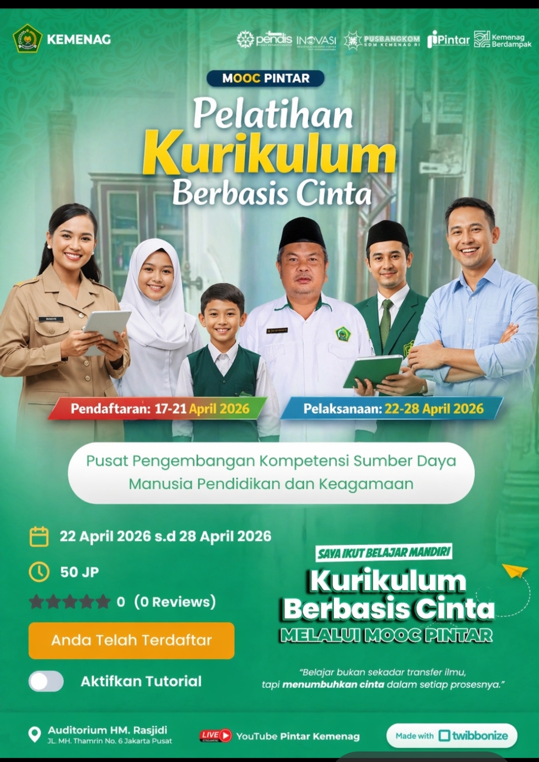 Kegiatan tersebut merupakan bagian dari Pelatihan Kurikulum Berbasis Cinta, sebuah program penguatan kapasitas yang digagas Kementerian Agama dalam rangka membangun pendekatan pendidikan dan penyuluhan yang humanis, inklusif, serta berorientasi pada nilai-nilai kasih sayang.