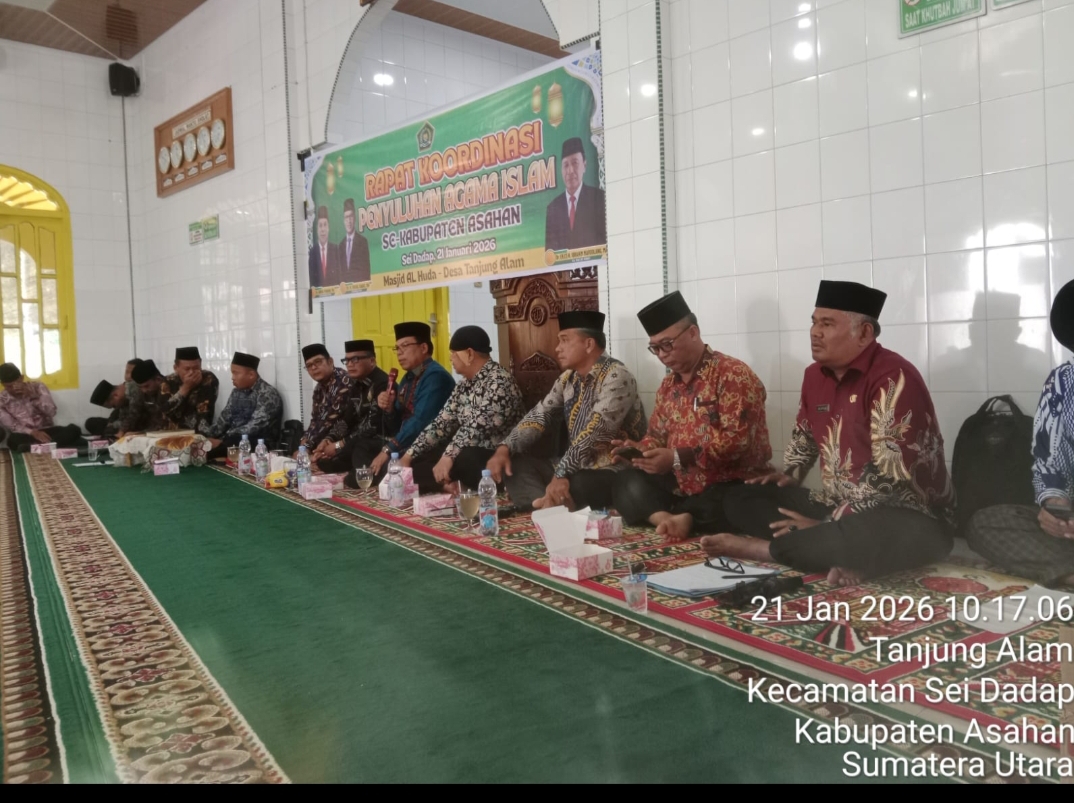 Kisaran (Humas) — Dalam rangka memantapkan pelaksanaan program keagamaan tahun 2026, Penyuluh Agama Islam Kementerian Agama Kabupaten Asahan menggelar Rapat Koordinasi pada Rabu, 21 Januari 2026, pukul 08.30 WIB hingga selesai. Kegiatan berlangsung di Masjid Al-Huda, Desa Tanjung Alam, Kecamatan Sei Dadap, Kabupaten Asahan.