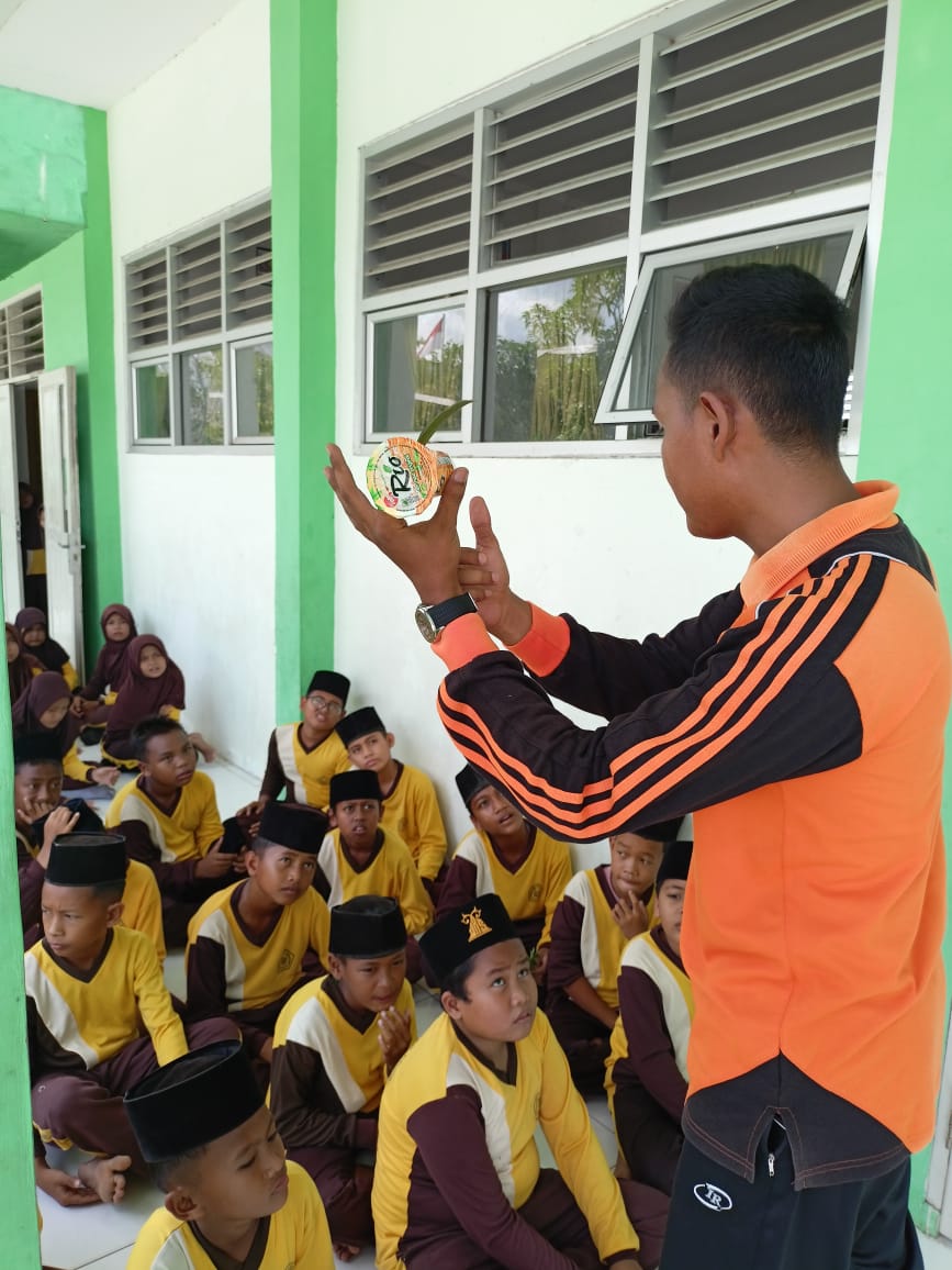 Pada kegiatan kali ini guru dan peserta didik sama-sama bekerjasama dan memanfaatkan bahan bekas dan bahan daur ulang seperti botol minuman dan daun mangga untuk dijadikan alat bantu belajar. Media yang dihasilkan tidak hanya menarik perhatian siswa, tetapi juga memperkuat pemahaman konsep pelajaran melalui praktik langsung.