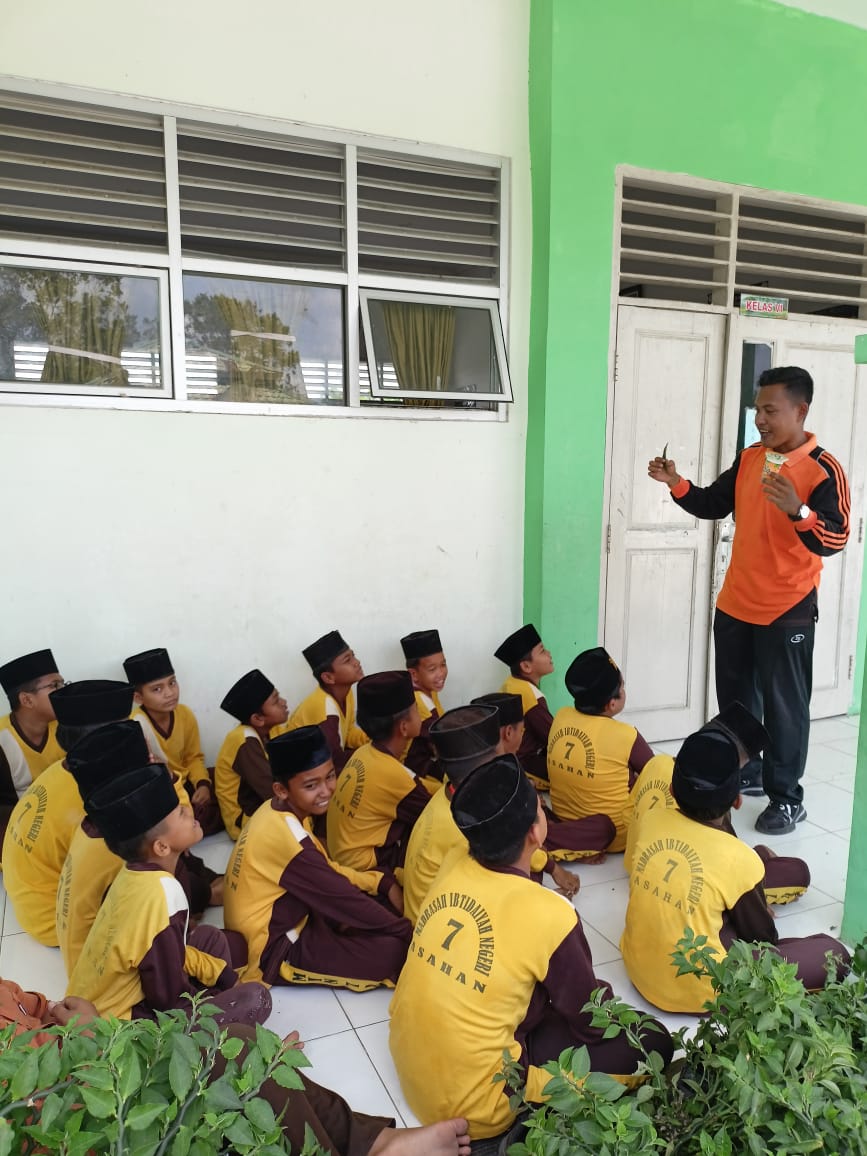 Pertahanan (Humas)- Salah satu guru Madrasah Ibtidaiyah Negeri 7 Asahan yaitu guru kelas VI Muhammad Jaidz Haritsah Abuzar Algiffar, S.Pd kembali menunjukkan inovasi dalam kegiatan pembelajaran sekaligus menanamkan kepedulian terhadap lingkungan. Guru kelas VI melaksankan kegiatan belajar mengajar berbasis lingkungan yang dilaksanakan di halaman MIN 7 Asahan. Jumat (07/11/25)