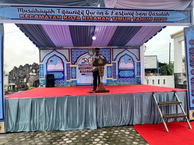 Kua Kistim, (Humas). Penghulu/Kakua Kec Kistim (Kepala Kantor Urusan Agama Kecamatan Kisaran Timur) sekaligus PC APRI (Asosiasi Penghulu Republik Indonesia) Kab. Asahan Prov. Sumatera Utara H. Junaidi, S.Ag., M.M. dalam kesempatan ini Junaidi memimpin doa dalam pembukaan Musabaqah Tilawatil Qur’an (MTQ) dan Festival Seni Qasidah (FSQ) tingkat Kecamatan Kota Kisaran Timur. Kegiatan tersebut dilaksanakan di halaman Kantor Camat Kota Kisaran Timur, Jalan Ahmad Yani, Kelurahan Kisaran Naga, Kamis (12/2/2026).