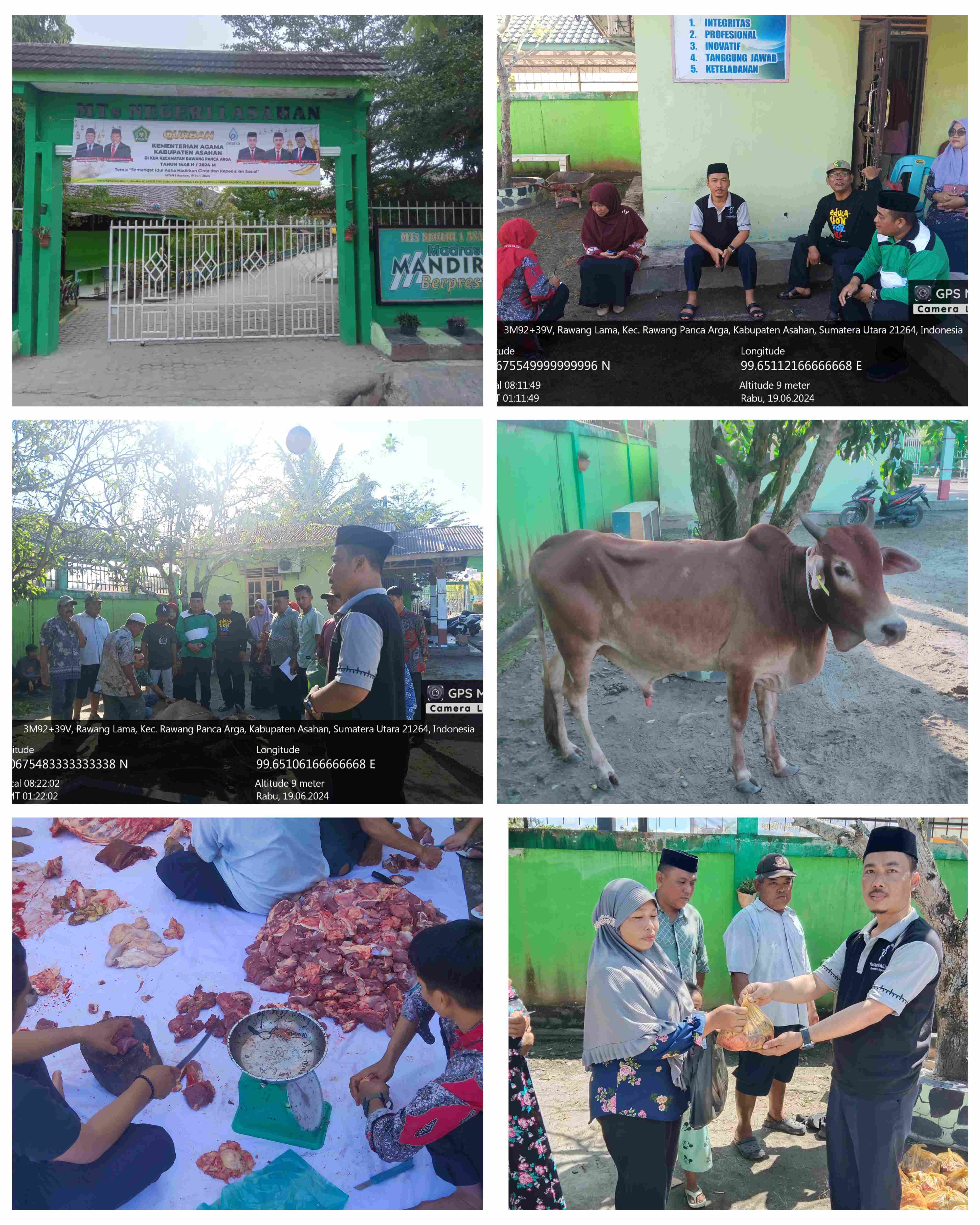 Tahun ini, Ka. Kankemenag Asahan membagi titik penyembelihan hewan kurban ke beberapa kecamatan dengan tujuan agar masyarakat di berbagai kecamatan dapat menikmati daging kurban dari Keluarga besar Kemenag Asahan.