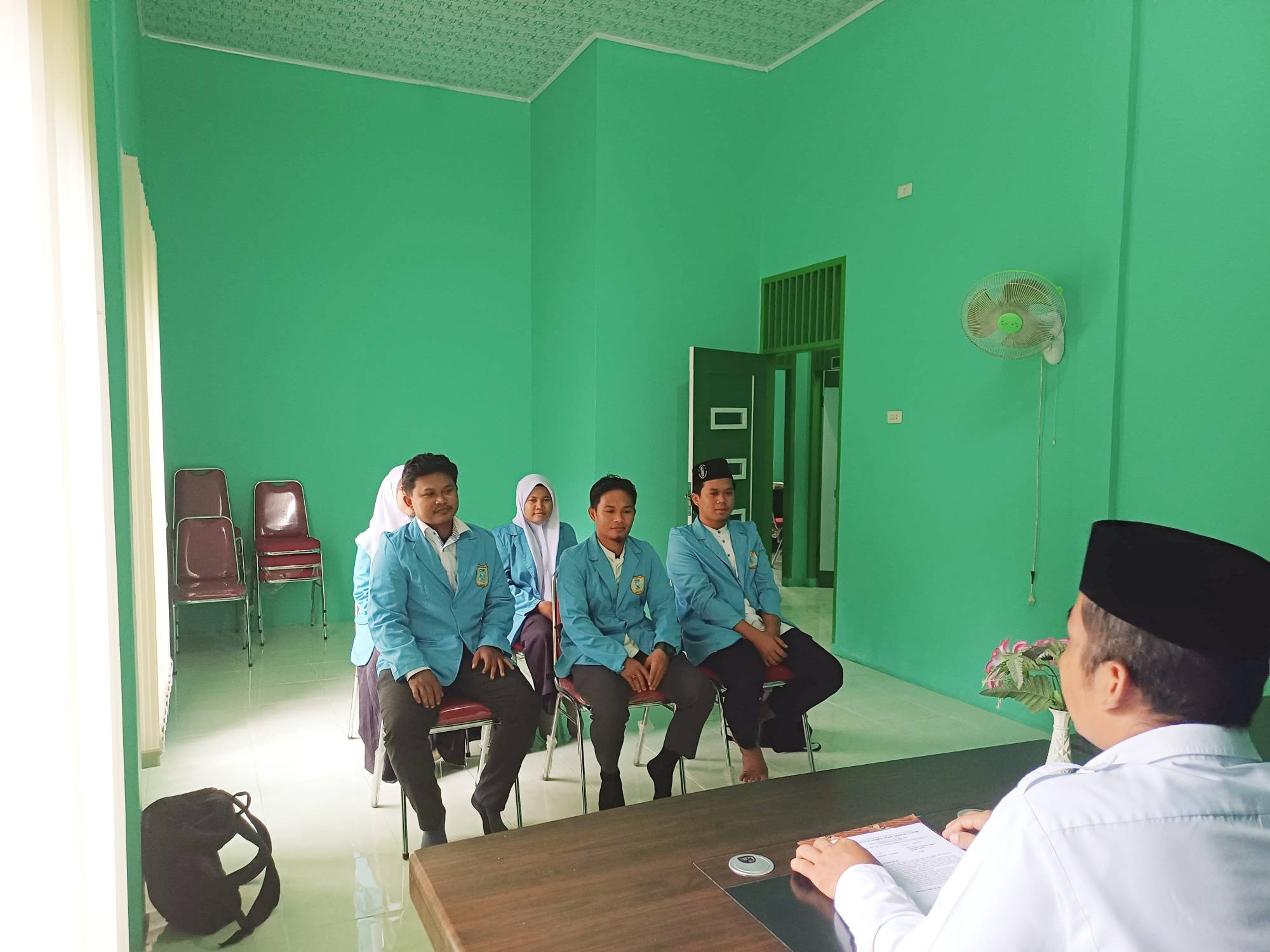 Kepala KUA Rawang Panca Arga, Muhammad Yakub, S.HI, menerima kunjungan dari lima mahasiswa Praktik Pengalaman Lapangan (PPL) dari Fakultas Syari'ah Institut Agama Islam Daar Al-Ulum Asahan Kisaran, Senin 4 November 2024.