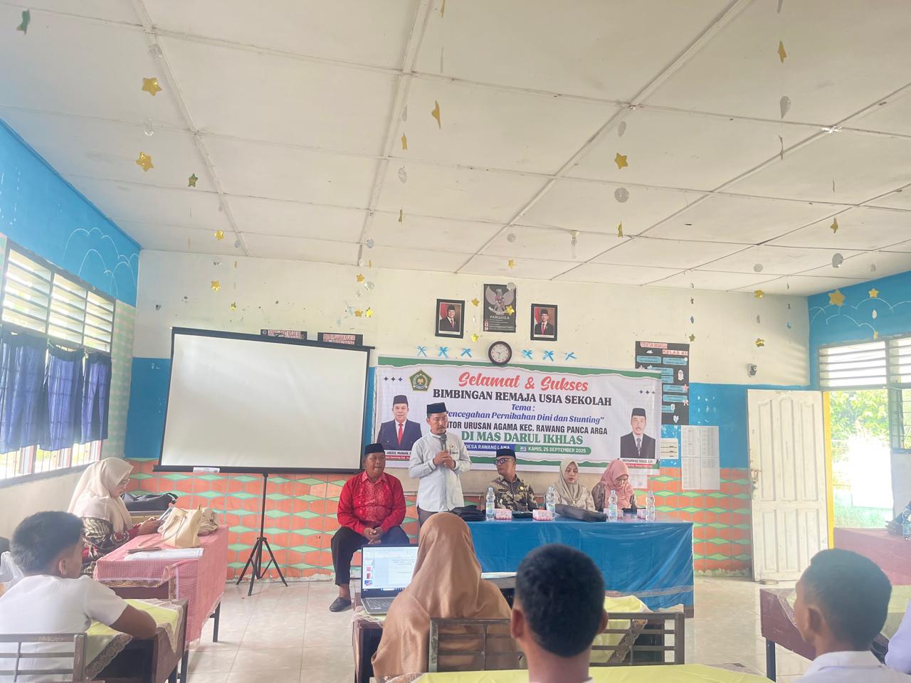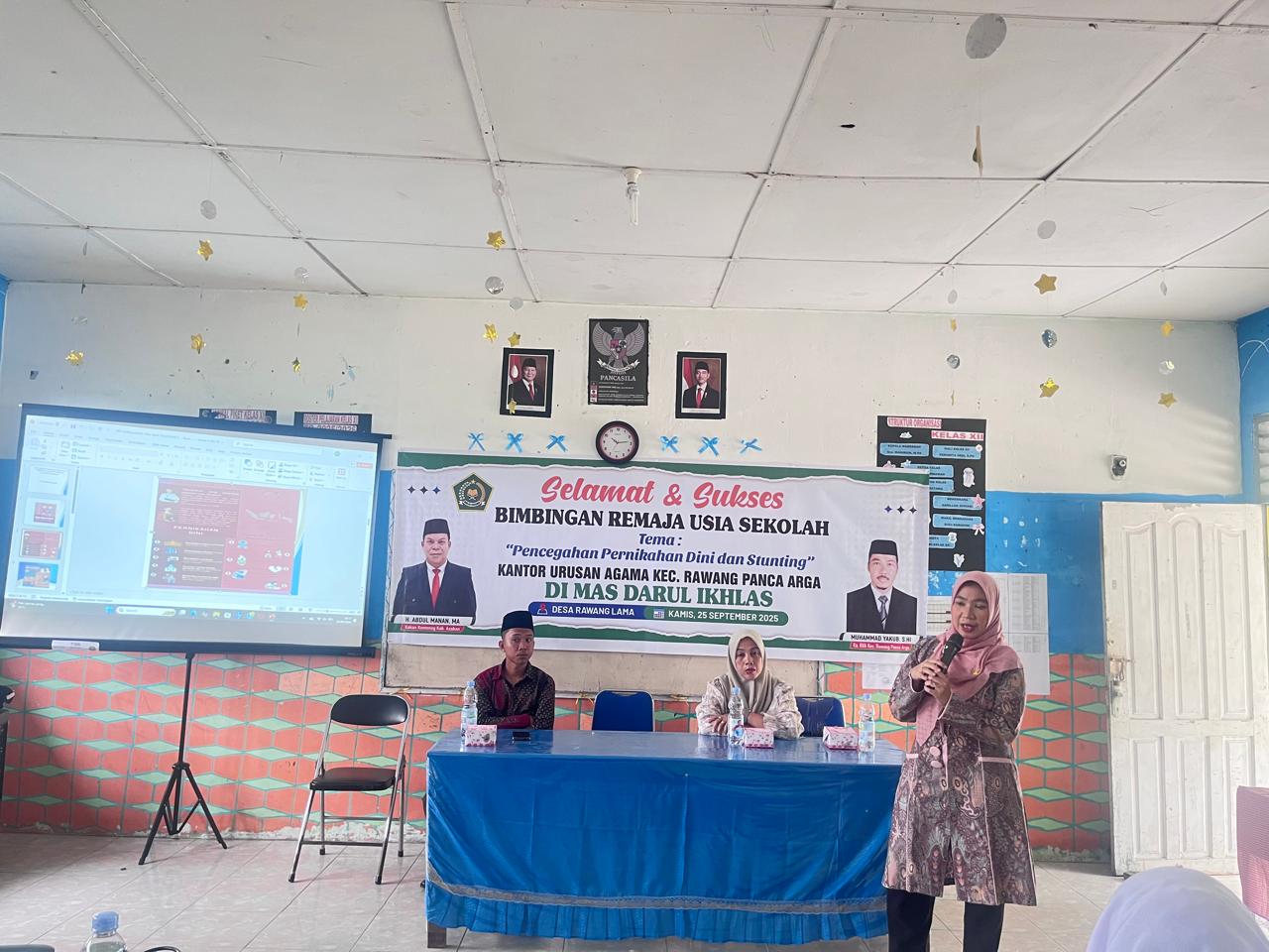 Kantor Urusan Agama (KUA) Kecamatan Rawang Panca Arga menyelenggarakan kegiatan Bimbingan Remaja Usia Sekolah (BRUS) sebagai upaya strategis untuk menekan angka pernikahan dini dan kasus stunting di wilayahnya. Acara edukatif ini berlangsung pada Kamis, 25 September 2025, bertempat di MAS Darul Ikhlas, Desa Rawang Lama. Kegiatan ini diikuti oleh 33 orang siswa dan siswi kelas IX MAS Darul Ikhlas yang antusias mengikuti materi bimbingan yang disajikan oleh berbagai narasumber kompeten.