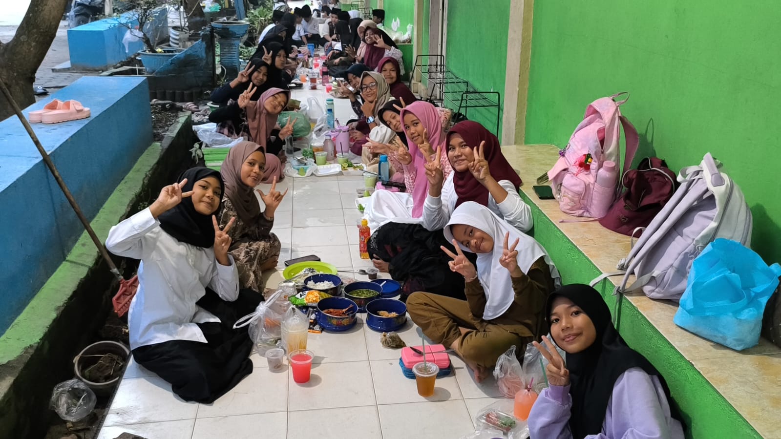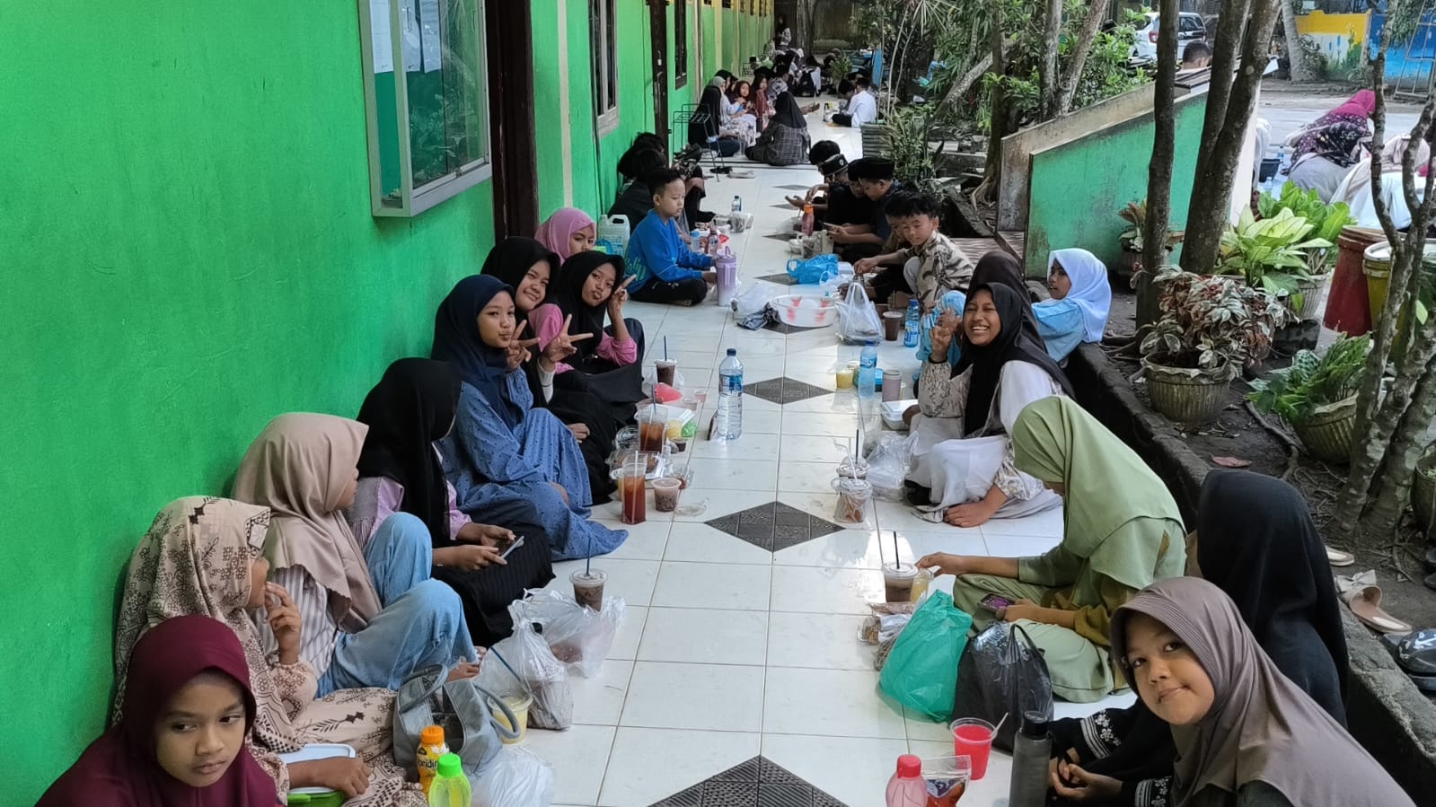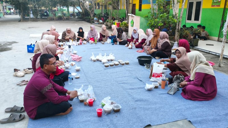 Suasana kehangatan begitu terasa ketika guru dan siswa duduk berdampingan di atas tikar dan karpet, menyantap hidangan berbuka dengan tertib dan penuh kebersamaan. Canda ringan dan senyum bahagia terlihat menghiasi wajah para siswa yang menikmati momen tersebut. Setelah membatalkan puasa dengan takjil, kegiatan dilanjutkan dengan menyantap makanan berat yang telah dipersiapkan.
