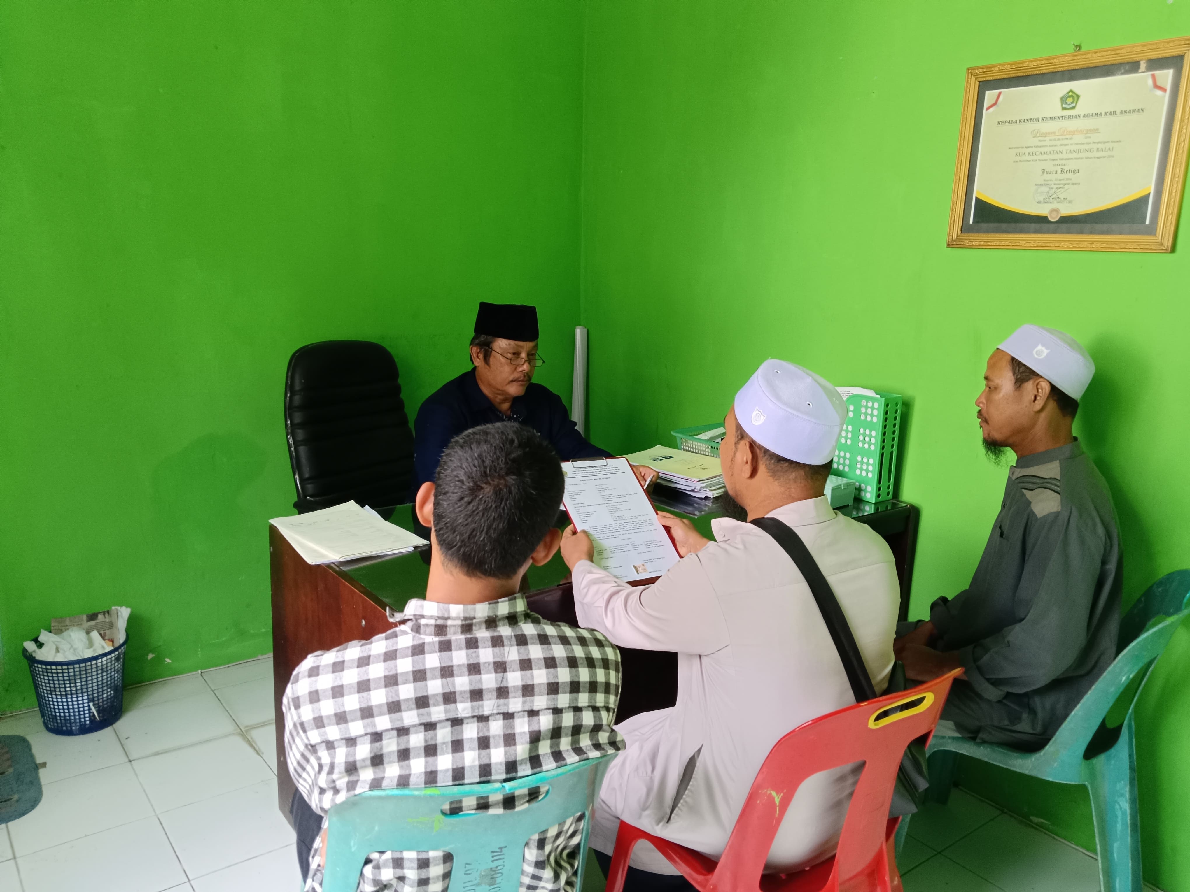Kecamatan Tanjung Balai (Humas) — Kepala Kantor Urusan Agama (KUA) Kecamatan Tanjung Balai, Khairuddin, S.Ag, melaksanakan layanan permohonan berwakil wali nikah pada Selasa, 30 Desember 2025, bertempat di Kantor KUA Kecamatan Tanjung Balai.