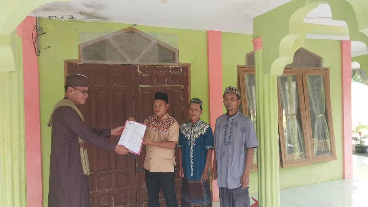 KUA BP. MANDOGE MENYERAHKAN SK BKM MESJID ASSOLIHIN DUSUN V DESA BP. MANDOGE