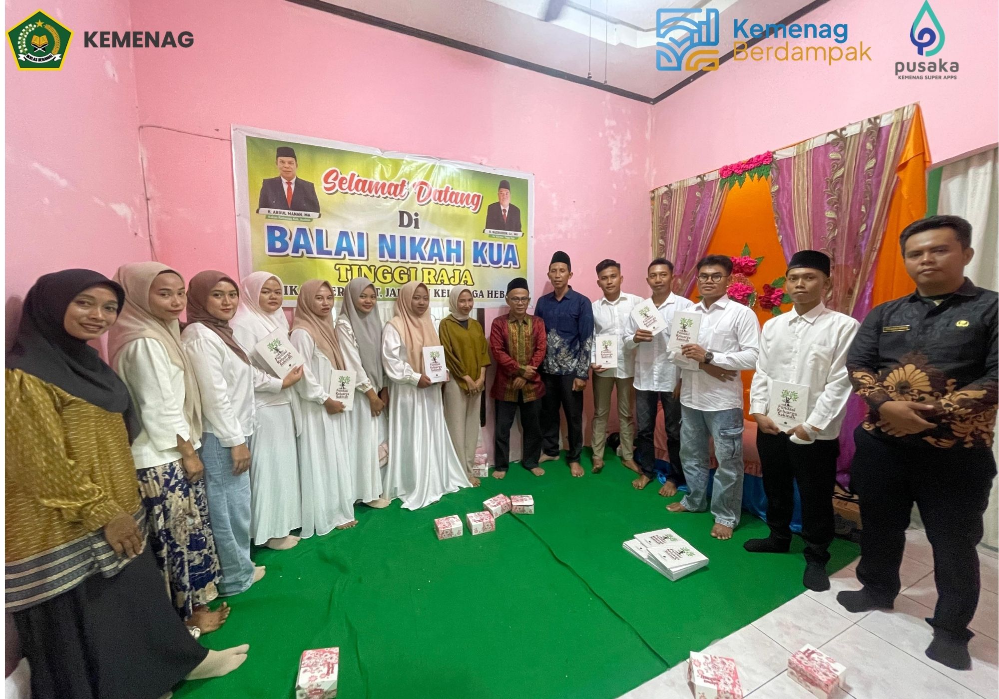 Usai memberikan materi bimbingan perkawinan Plt. Kepala KUA Tinggi Raja bersama Penyuluh agama Islam dan staf kemasjidan menyerahkan Buku Keluarga Sakinah kepada para calon pengantin sebagai pedoman dalam membina kehidupan rumah tangga. Penyerahan buku tersebut menjadi simbol komitmen KUA dalam mendukung terwujudnya keluarga yang harmonis, serta menjadi bekal bagi pasangan untuk memahami nilai-nilai, prinsip, dan tuntunan dalam membangun rumah tangga yang sakinah, mawaddah, dan rahmah.