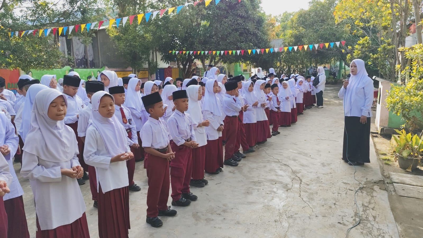 Rangkaian kegiatan dimulai dengan doa bersama yang dilaksanakan di Lapangan MIN 1 Asahan, dipimpin langsung oleh Aisyah, S.Pd. Doa dipanjatkan agar bangsa Indonesia kembali damai, tenteram, serta terhindar dari perpecahan.