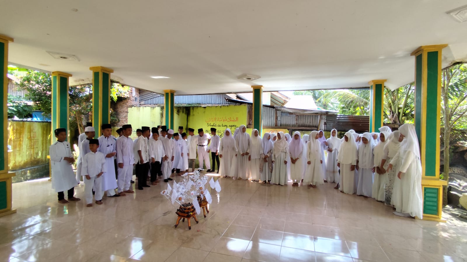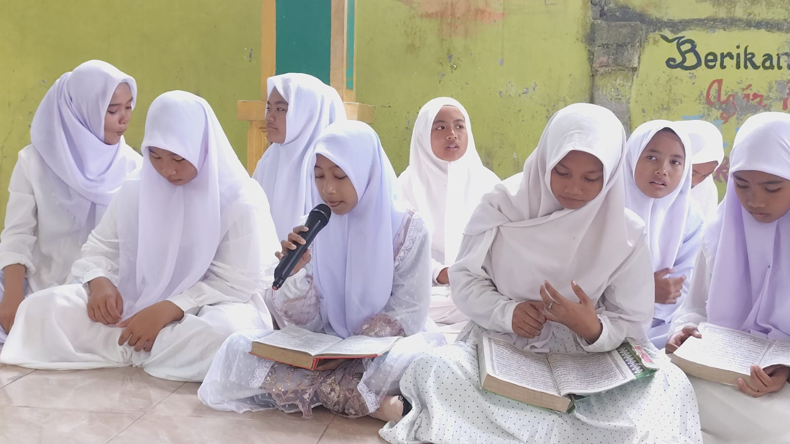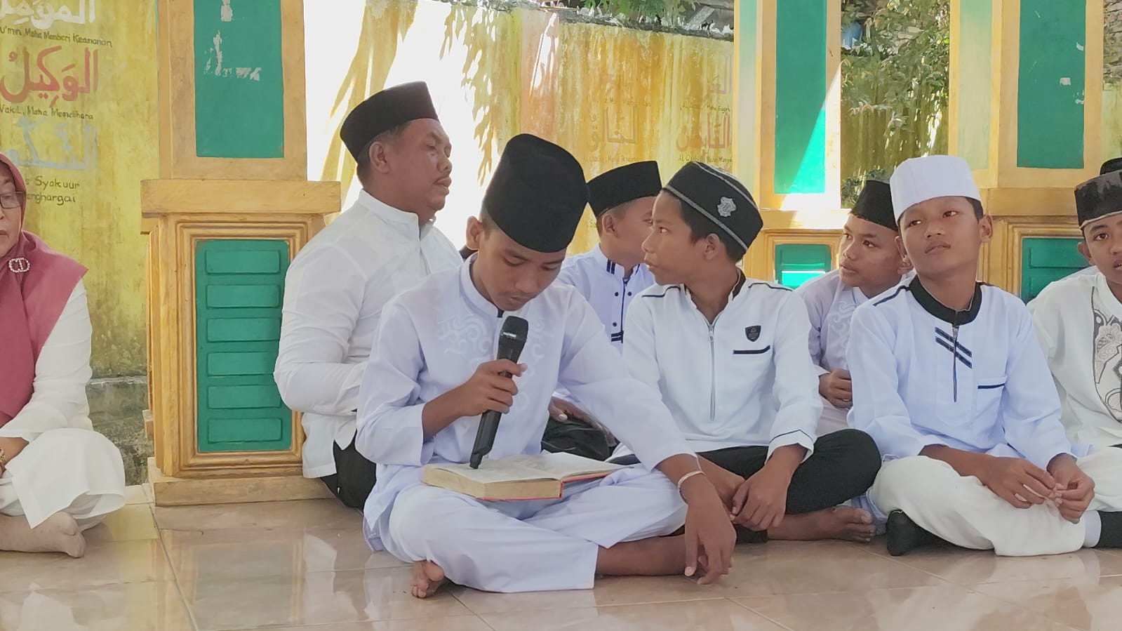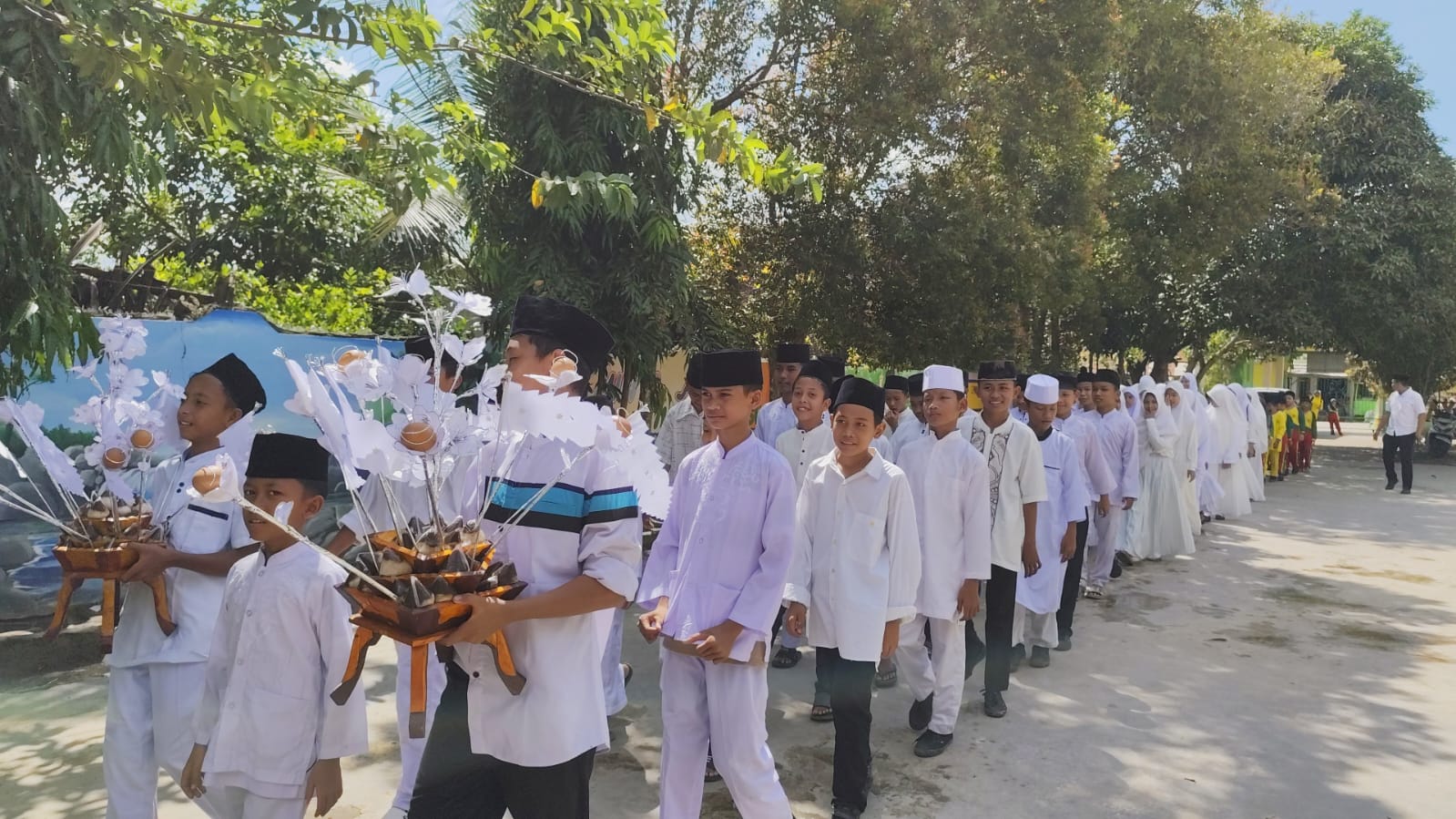 Kegiatan diawali dengan arak-arakan para siswa siswi kelas 6 mengelilingi lingkungan madrasah sebagai bentuk semarak dan rasa syukur atas khatamnya mereka membaca Al-Qur’an. Setelah itu, seluruh peserta dan guru berkumpul di musholla madrasah untuk melanjutkan rangkaian acara.