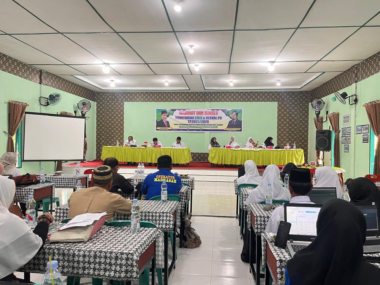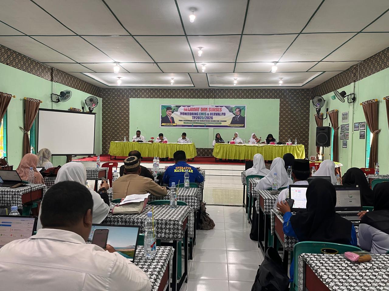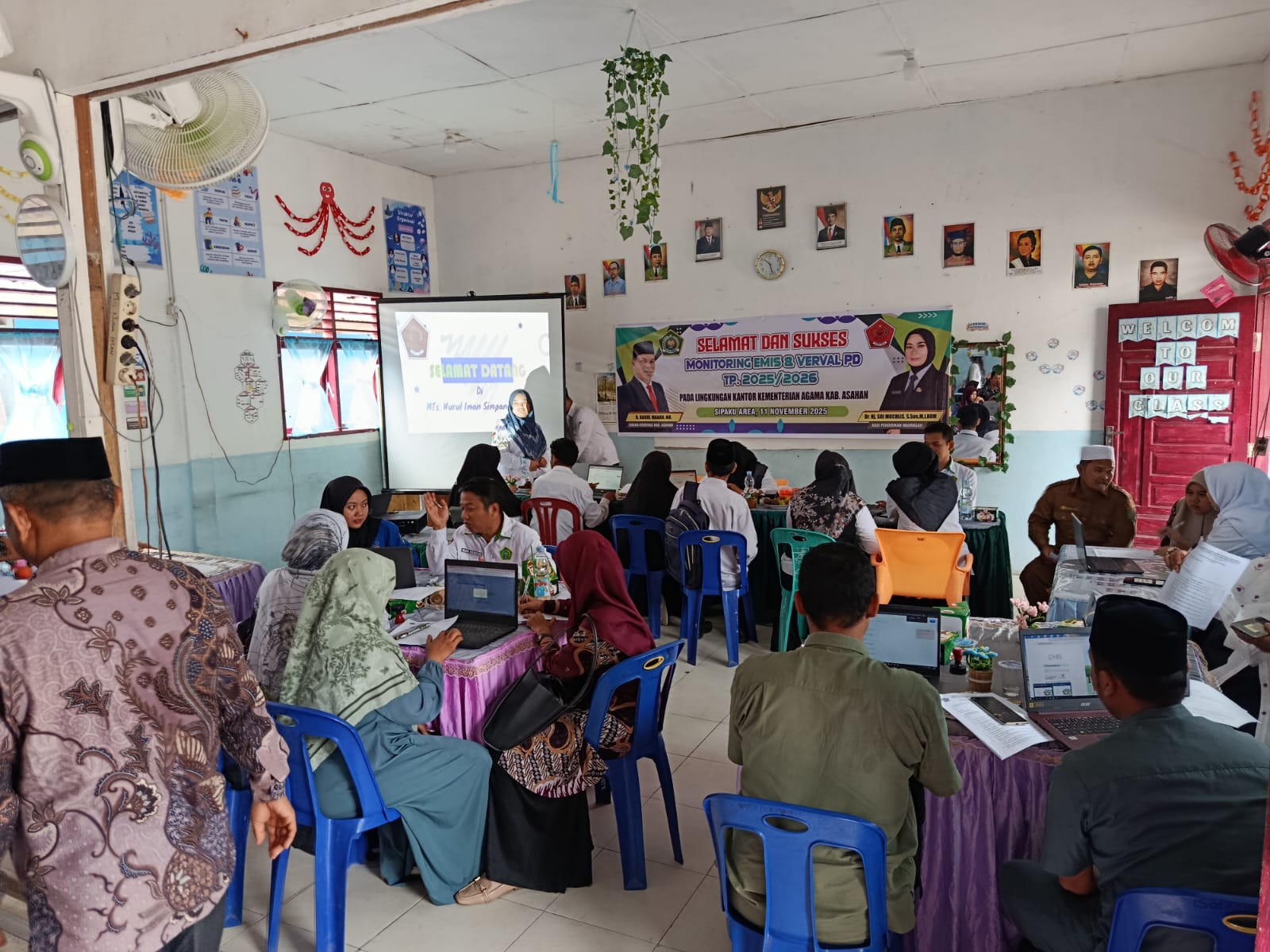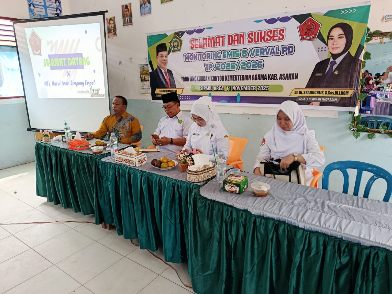 Kisaran (Humas). Seksi Pendidikan Madrasah Kementerian Agama Kabupaten Asahan melaksanakan Monitoring dan Evaluasi (Monev) Emis dan Verval PD untuk tingkat RA, MI, MTs, dan MA se-Kabupaten Asahan Tahun Pelajaran 2025/2026. Kegiatan ini dilaksanakan pada tanggal 10 November 2025 dan berakhir pada tanggal 18 November 2025. Mengingat banyaknya Madrasah yang terdapat pada Kabupaten Asahan, pelaksanaan kegiatan ini dilaksanakan pada 7 zona lokasi yang berbeda dengan harapan semua Kepala dan Operator Madrasah dapat hadir pada kegiatan ini. Kegiatan ini dihadiri oleh Bapak Kepala Kantor Kementerian Agama Kabupaten Asahan H. Abdul Manan, MA. didampingi oleh Ibu Kepala Seksi Pendidikan Madrasah Kementerian Agama Kabupaten Asahan Dr. Sri Muchlis, S. Sos., M. I. Kom. serta seluruh staf Pendidikan Madrasah pada kementerian Agama Kabupaten Asahan.