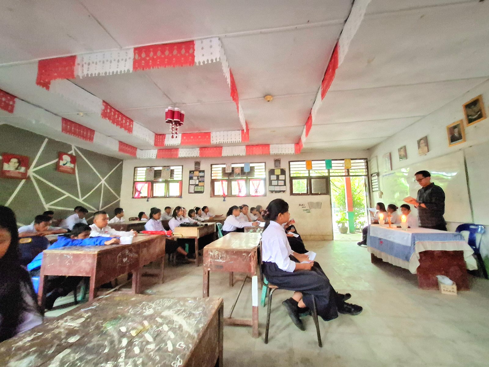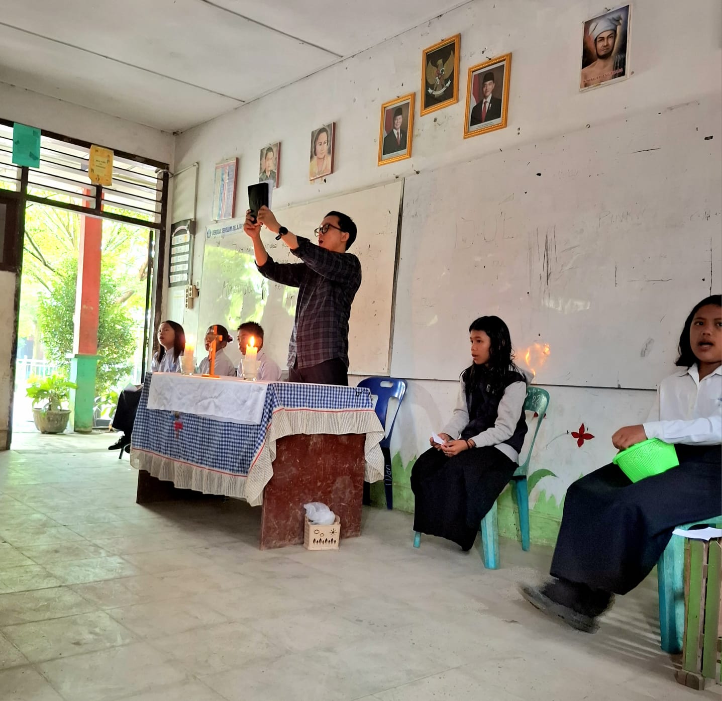bersama kelompok remaja Katolik di UPTD SMP Negeri 2 Pulau Rakyat, Desa Padang