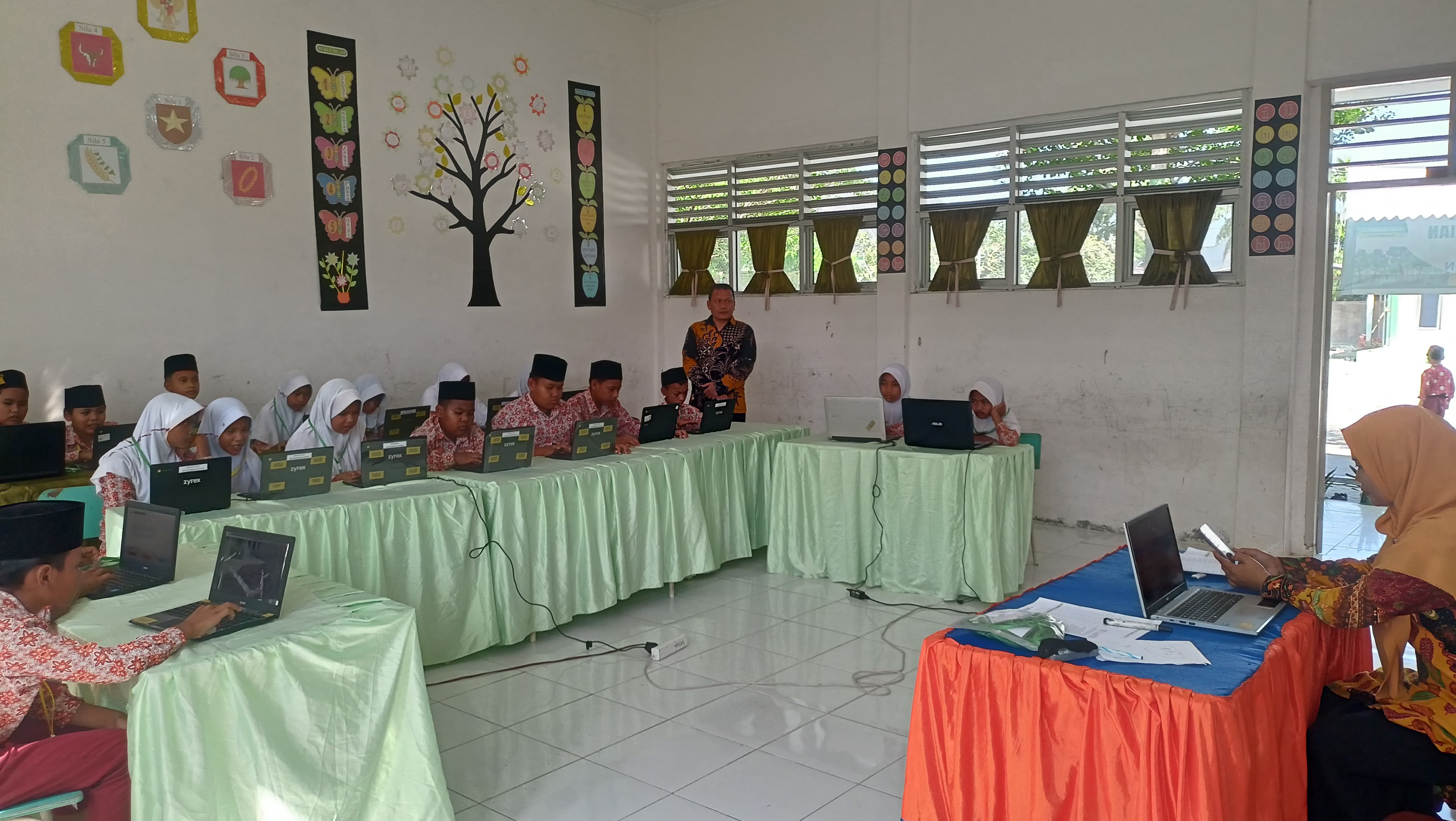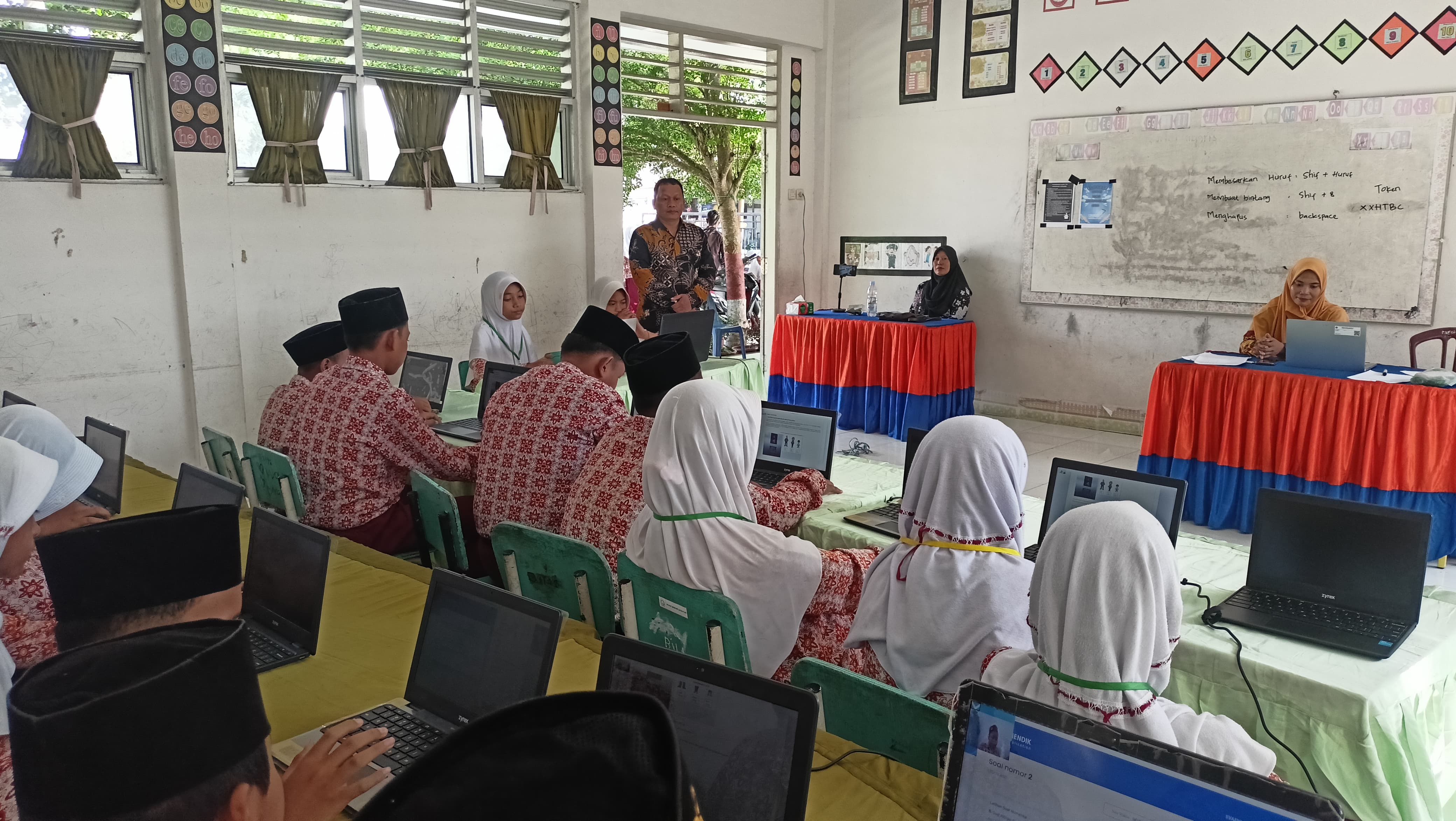 Para guru tampak aktif mengawasi jalannya kegiatan dengan penuh tanggung jawab. Mereka memastikan suasana ujian tetap kondusif dan nyaman bagi siswa. Selain itu, guru MIN 7 Asahan juga memberikan motivasi kepada siswa agar tetap tenang dan fokus dalam mengerjakan soal.