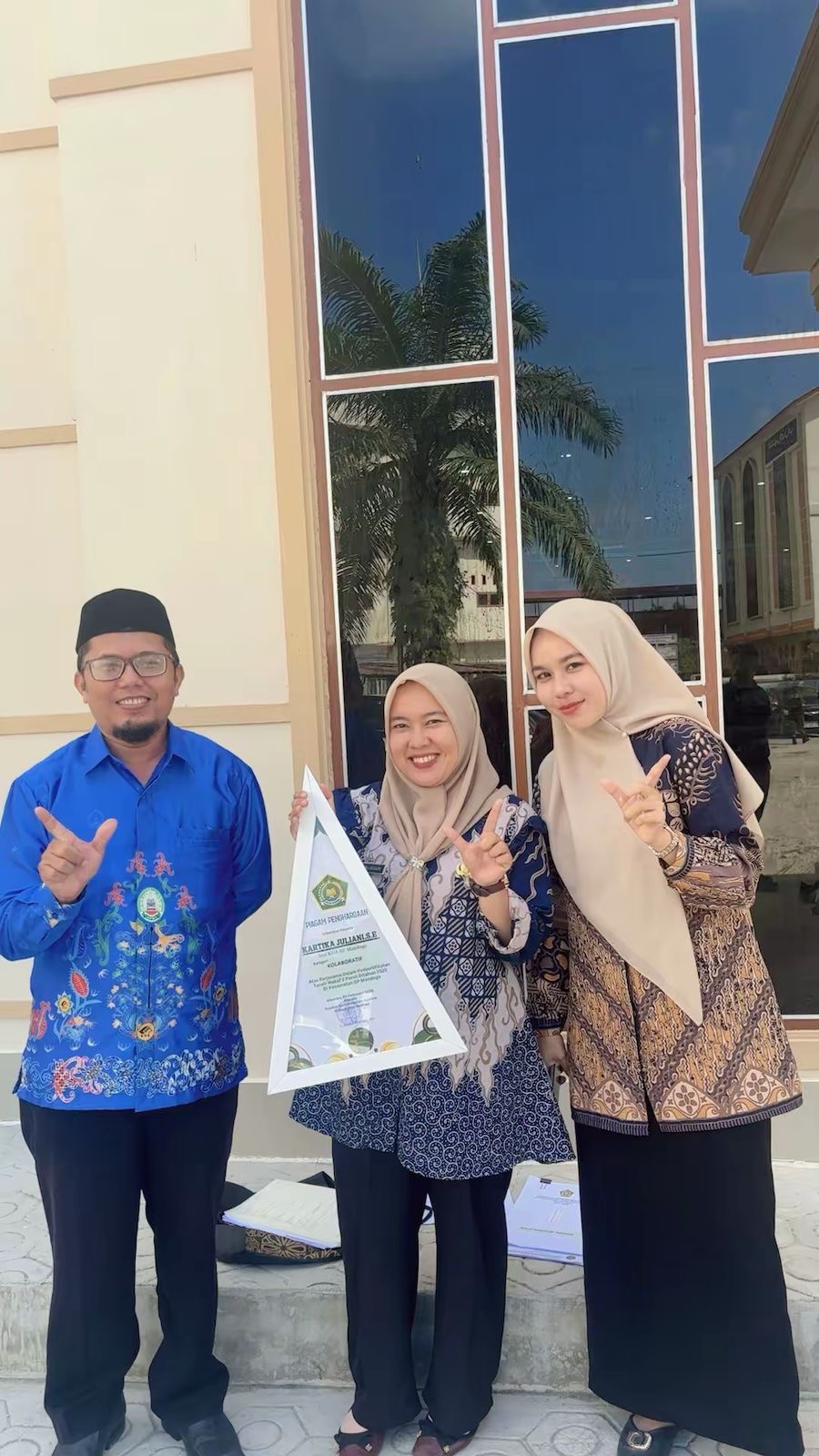 BP. Mandoge — Staf Kantor Urusan Agama (KUA) Kecamatan BP. Mandoge, Ibu Kartika Juliani, SE, menerima Piagam Kolaboratif atas kontribusinya dalam proses pembuatan sertifikat tanah wakaf sebanyak dua persil. Piagam tersebut diberikan sebagai bentuk apresiasi atas sinergi dan kerja sama lintas sektor dalam mendukung tertib administrasi perwakafan.